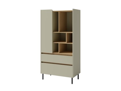 Modern komód gyönyörű világoszöld és tölgy szín kombinációjában magas fekete fém lábakkal