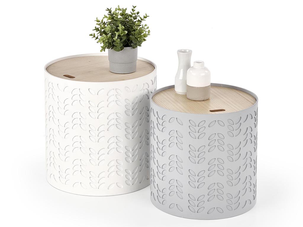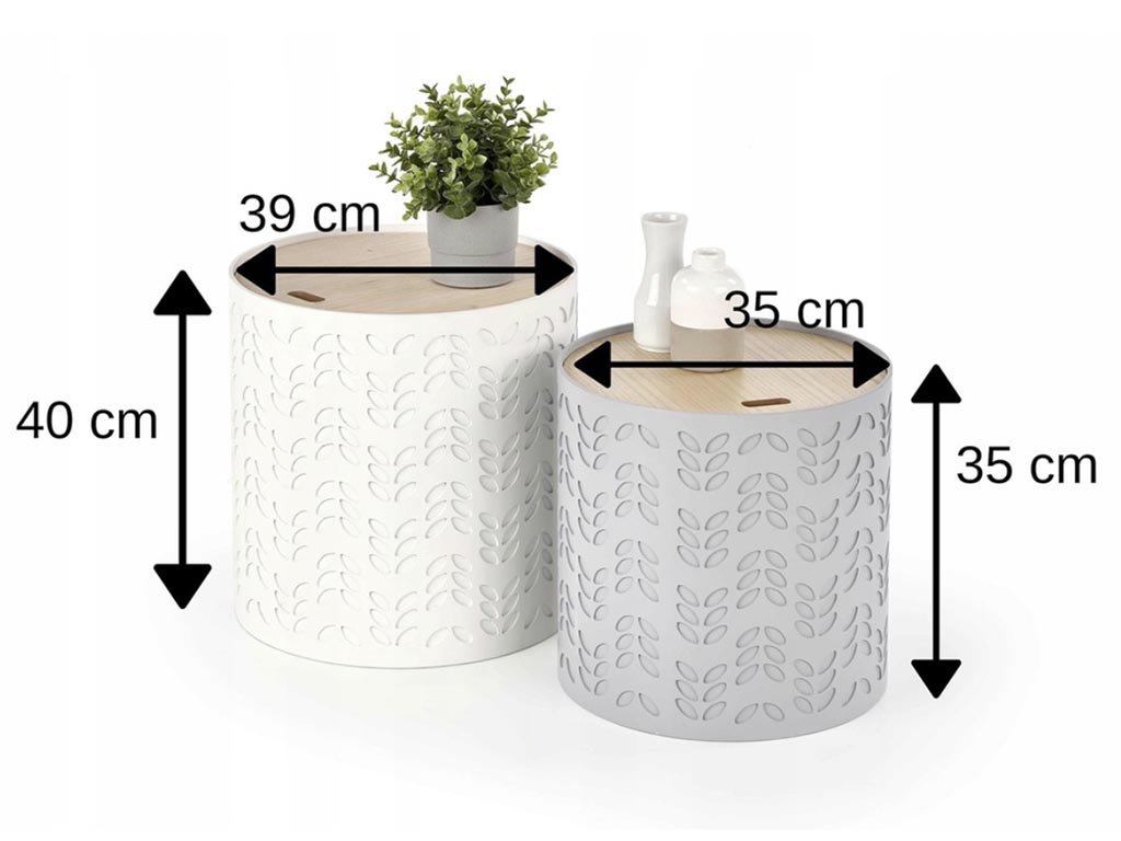 Egy praktikus és kevés helyet foglaló kisasztalt keres a nappaliba, az előszobába, a gyerekszobába vagy a váróterembe? Tökéletes megoldást jelenthetnek az ALBA kisasztalok, amelyek remekül néznek ki egymás mellett. A két asztalka fehér és szürke színben készül levehető asztallappal, amelyek így tároló helyet biztosítanak. A mellékasztalok tökéletesek növényeknek vagy dekorációknak. Minőségi lakkozott MDF-ből készülnek.