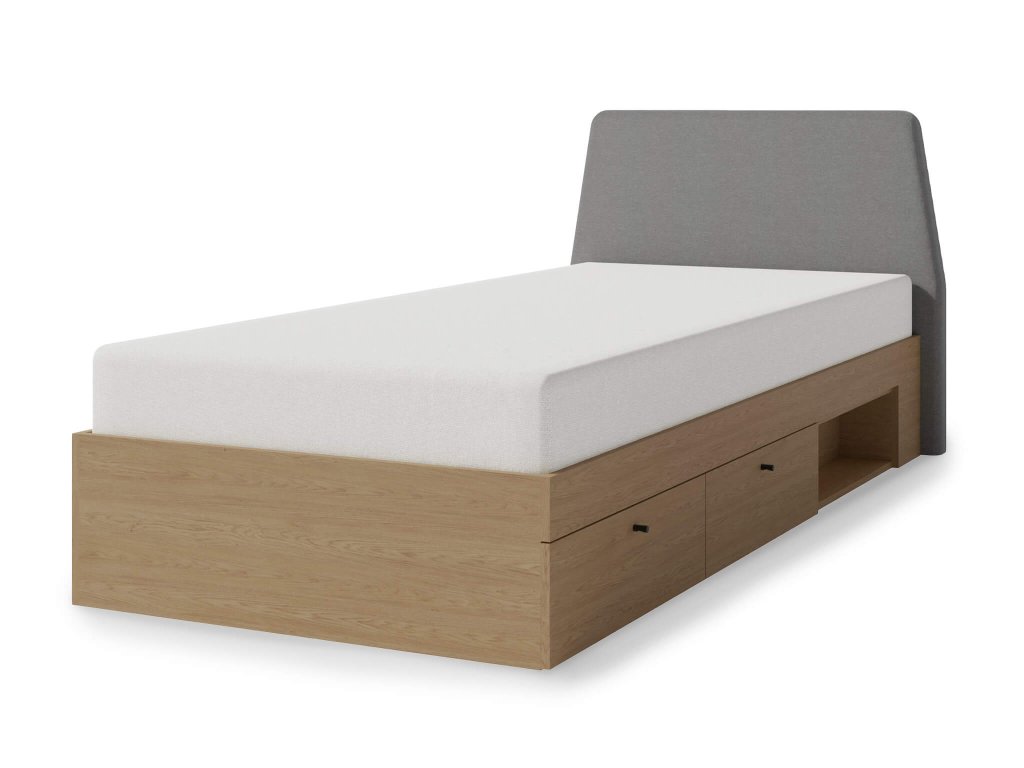 Méret (SzéxMaxMé): 125 x 83 x 64,5 cm. - ALESSIO AE12 egyszemélyes ágy 90x200: szürke kárpitozott ágytámlával rendelkező kényelmes ágy kerekeken mozgatható ágyneműtartó fiókokkal