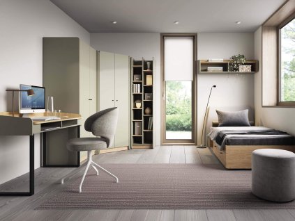 Komplett gyerekszoba összeállítás a gyönyörű ALESSIO bútorcsaládból zöld és baltic tölgy kombinációjában