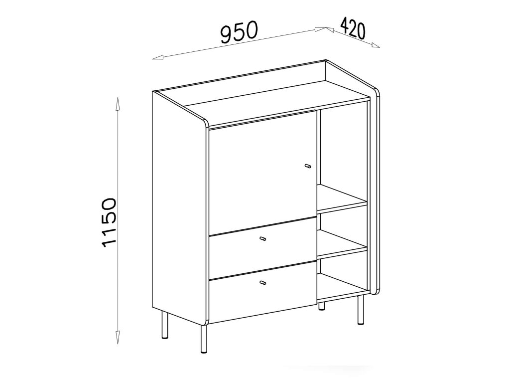 Méret (SzéxMaxMé): 125 x 83 x 64,5 cm. - ALESSIO AE9 komód: helyet biztosít az iskolai eszközöknek, füzeteknek, esetleg a ruháknak, fehérneműnek, zokniknak.