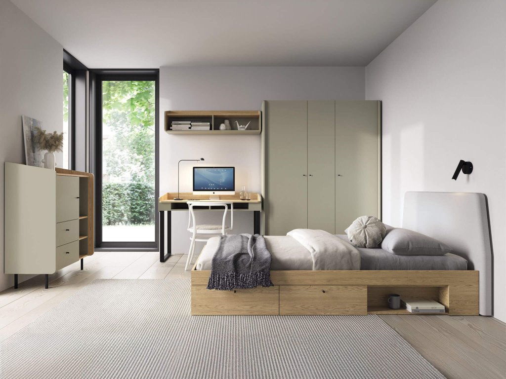 Az ALESSIO zöld gyerekszoba bútor összeállítás 5 bútor elemet tartalmaz az ALESSIO kollekcióból: