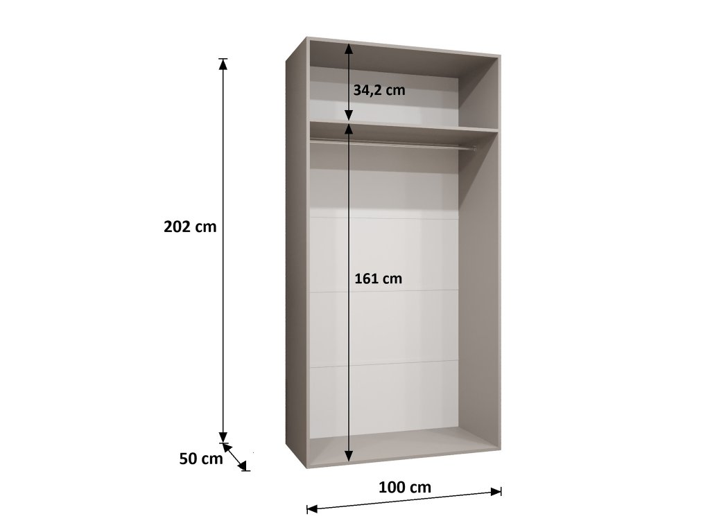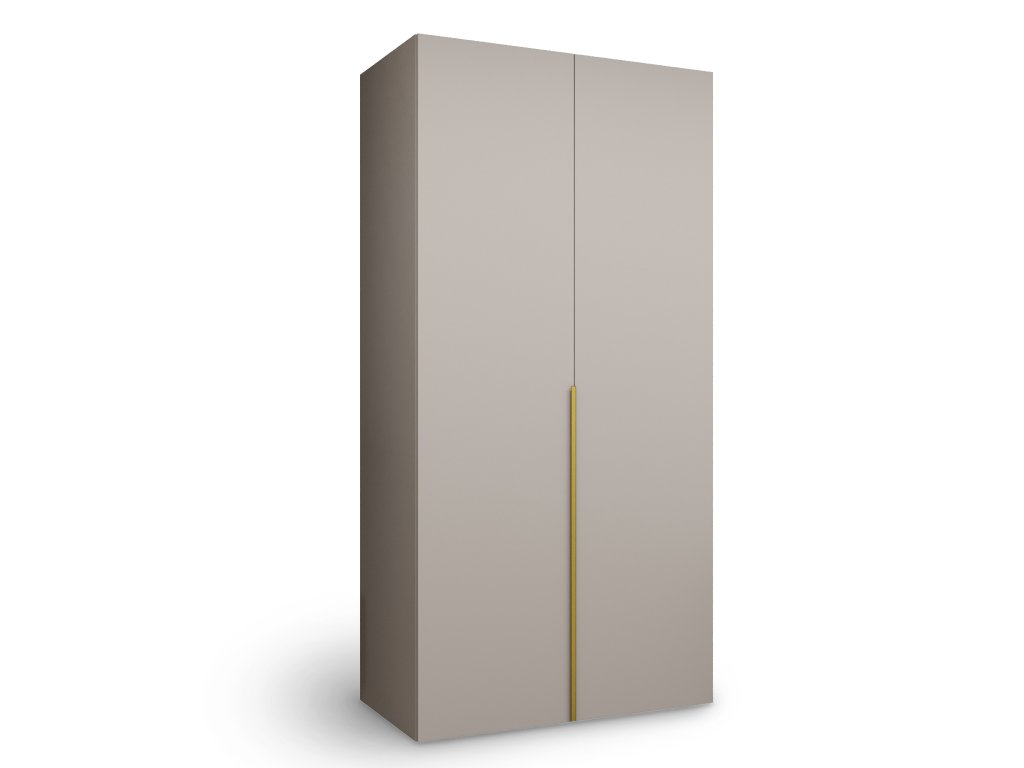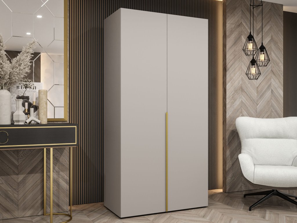 Az Alicante 1 kétszárnyú szekrény bármilyen enteriőrbe vagy helyiségbe illik. Ön döntheti el, hogy a szekrényt például hálószobába, előszobába, dolgozószobába vagy akár gyerekszobába helyezi-e. Az Alicante szekrény minőségi laminált bútorlapból készült. Ez az anyag minimalizálja az ujjlenyomatok láthatóságát és könnyen tisztán tartható. Minden él gondosan védett tartós PVC élfóliával, amely megóvja a szekrényt a sérülésektől és meghosszabbítja az élettartamát. Dizájnelemként szolgál az elegáns aranyszínű alumínium fogantyú, amely kontrasztot alkot a szekrény matt kasmírszínű felületével. A belső tér praktikus fém akasztórúddal és erős polccal rendelkezik, amelyek segítik a rend fenntartását ruháinál. Értékelni fogja továbbá a lágyan záródó ajtókat, amelynek köszönhetően azok csendesen és könnyedén záródnak.