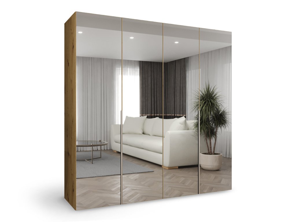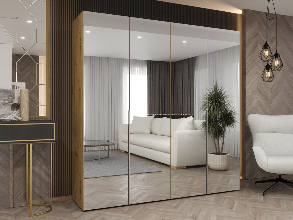 Stílusos összeállítást keres a hálószobába, előszobába vagy gyerekszobába? Ez a garnitúra két darab önálló Alicante 3 szekrényből áll, melyek egyenként 100 cm szélesek. Együtt így egy impozáns, 200 cm széles, tágas egységet alkotnak, amely bőséges tárolóhelyet biztosít ruhái és kiegészítői számára. Az univerzális artisan tölgy dekor bármilyen enteriőrben remekül mutat. A szekrények kiváló minőségű laminált lapból készülnek, amely tartós és hosszú élettartamot garantál. Az éleket masszív PVC élzárás védi, így a bútor ellenáll a mechanikai sérüléseknek és a kopásnak. Az ajtókra szerelt tükrök optikailag tágítják és világosabbá teszik a teret. A kasmír színű alumínium fogantyúk elegáns, luxus megjelenést kölcsönöznek a szekrényeknek. A belső elrendezés praktikus: strapabíró fém akasztórúd a ruhák felakasztásához, valamint masszív polcok a rendezetten tárolt holmik számára. Az ajtók csendes záródását egy speciális mechanizmus biztosítja, a szekrények stabilitásáról és tartósságáról pedig az erős, HDF hátlap gondoskodik.