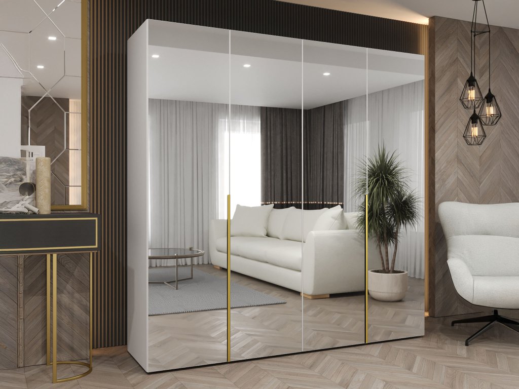 Ez az elegáns összeállítás két különálló Alicante 3 szekrényből áll, melyek egyenként 100 cm szélesek, így együtt egy 200 cm széles egységet alkotnak. Időtlen fehér kivitelének köszönhetően könnyedén illeszkedik bármilyen stílusú enteriőrbe – legyen szó modern hálószobáról, előszobáról vagy akár diákszobáról. A szekrények minőségi laminált lapból készülnek, amely strapabíróvá és megbízhatóvá teszi őket. Az élek tartós PVC borítást kaptak, amely hatékonyan védi a bútort a mechanikai sérülésektől és a mindennapi kopástól. A szekrényajtókra helyezett tükrök optikailag tágítják a teret, emellett praktikus funkciót is betöltenek. Az aranyszínű alumínium fogantyúk finom luxusérzetet kölcsönöznek az egész bútornak. A belső kialakításban masszív fém akasztórúd és praktikus polcok találhatók, melyek megkönnyítik a tárolt ruhák és egyéb tárgyak rendszerezését. Az ajtók csendes záródást biztosító vasalattal vannak felszerelve, így a használat különösen halk és zökkenőmentes – ezt főként az éjszakai órákban fogja értékelni. A hátlapon elhelyezett HDF lap tovább növeli a szekrények stabilitását és élettartamát.