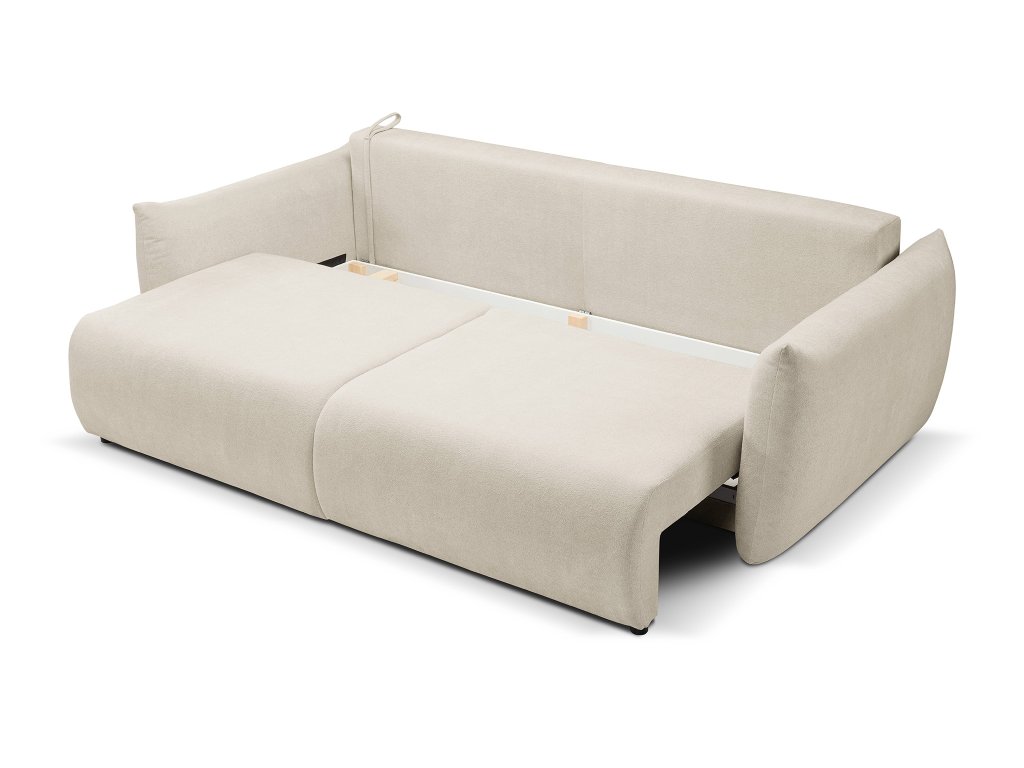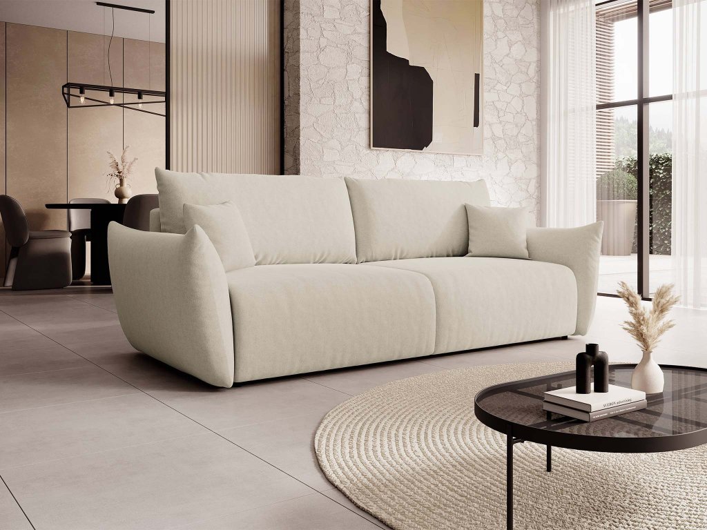 Az ALLORA ágyazható kanapé tökéletes választás mindazoknak, akik a modern designt, a magasfokú kényelmet és a környezettudatos megoldásokat kedvelik. A krémszínű kanapéágy tanúsítvánnyal rendelkező Melody szövettel kárpitozott, amelyet úgy terveztek, hogy környezetbarát legyen és egészségre ártalmatlan. Nem tartalmaz semmilyen káros anyagot, így gyermekek és allergiások számára is biztonságos. Ez a kárpitszövet kellemes tapintású, elegáns megjelenésű, ugyanakkor igen ellenálló mindennapi használat mellett is.