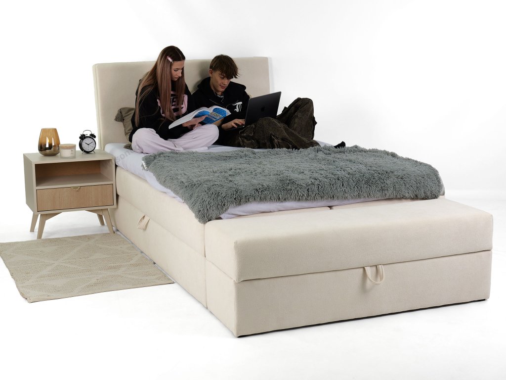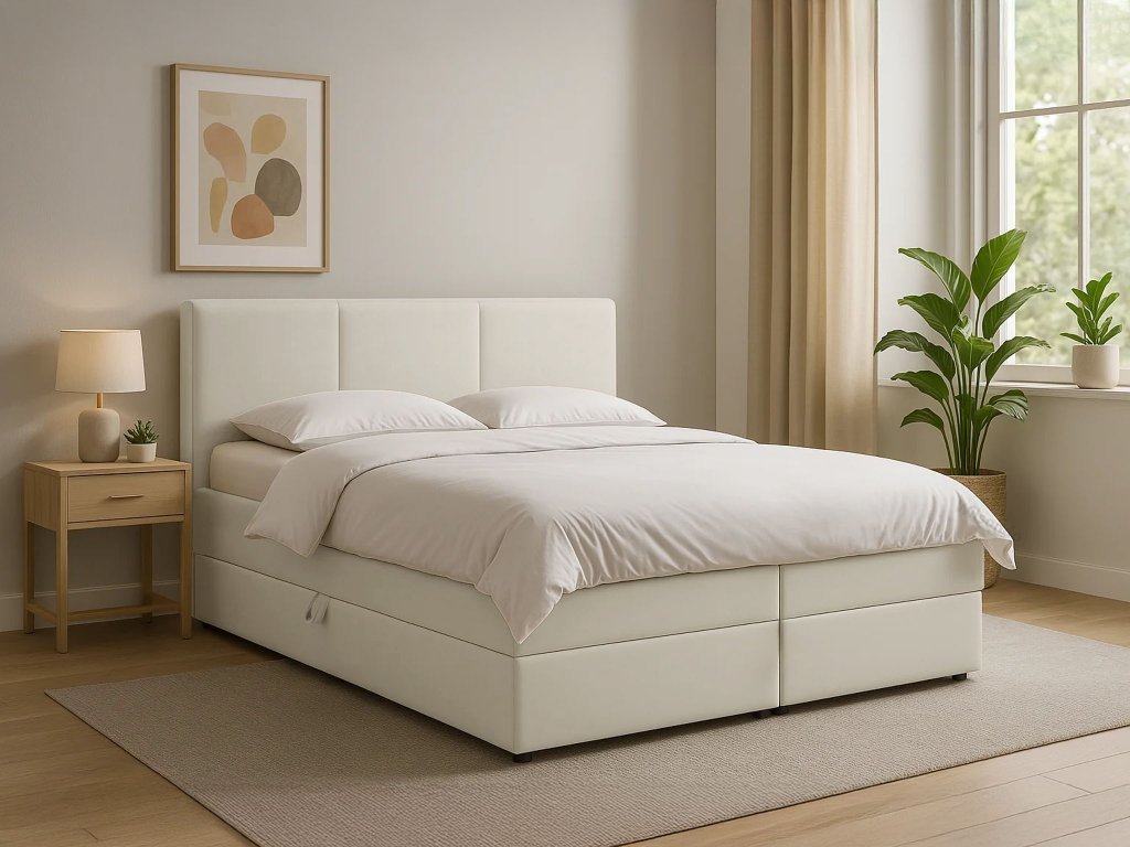 ALURIA kárpitozott boxspring ágy - krémszínű
