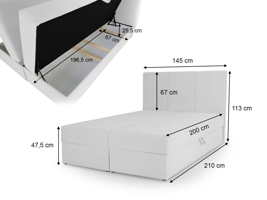 Elegáns ALURIA franciaágy ágyneműtartóval, amely remek kiegészítő minden otthonba. A boxspring ágyak igazán nagy népszerűségnek örvendenek főleg a magasságuk és az általuk nyújtott kényelem miatt is. A kontinentális ágy beépített bonellrugós matraccal rendelkezik, azonban a fedőmatrac nem része az ágynak. Az ágy masszív szerkezetét tömör fa és laminált forgácslap alkotja. Az egész ágy krémszínű Hunter szövettel kárpitozott, amely igazán ellenálló és könnyen tisztítható. Ezért ez az ágy gyerekes családoknak vagy azoknak is megfelelő, akik házi kedvencet tartanak. Az amerikai típusú ágy felnyitható ágyneműtartóval is el van látva, ahová elhelyezheti az éppen nem használt ágyneműt vagy a szezonális ruhákat. A boxspring ágy magas háttámlával is el van látva, amely igazán jó szolgálatot tesz tévénézés vagy könyvolvasás közben. Az ágyhoz színben és stílusban hozzáillő tárolós pad is vásárolható, amelyet megtalál kínálatunkban.