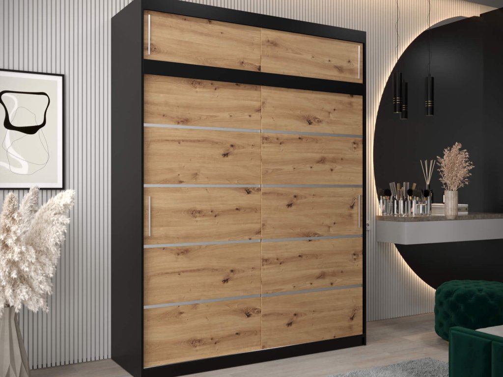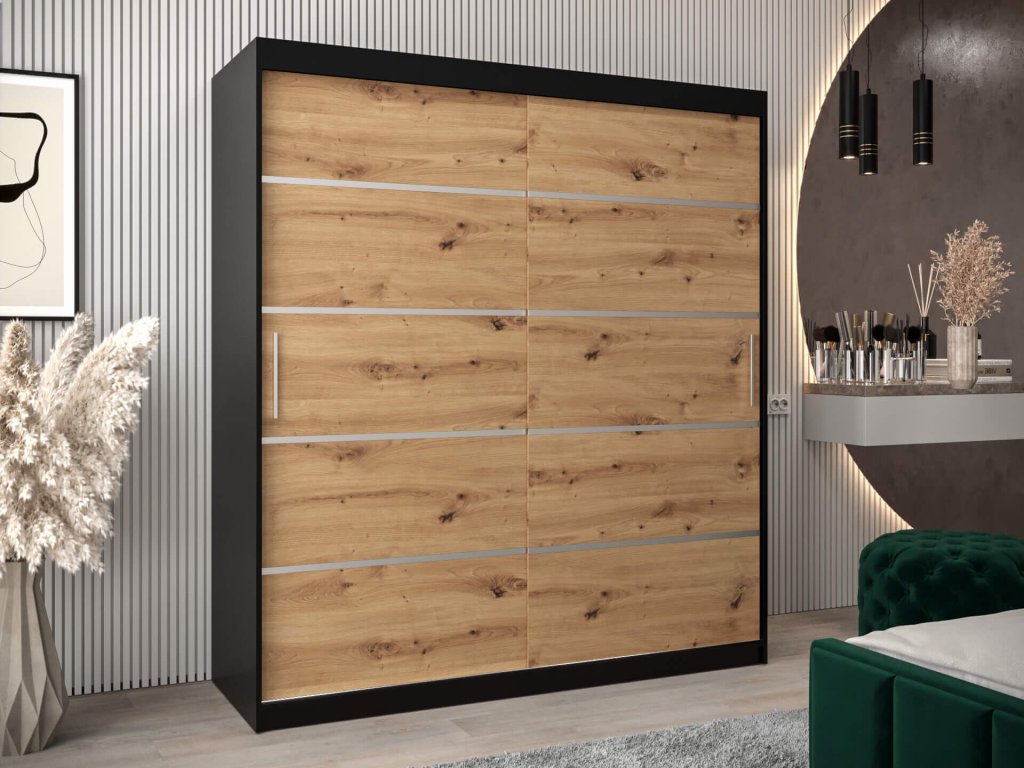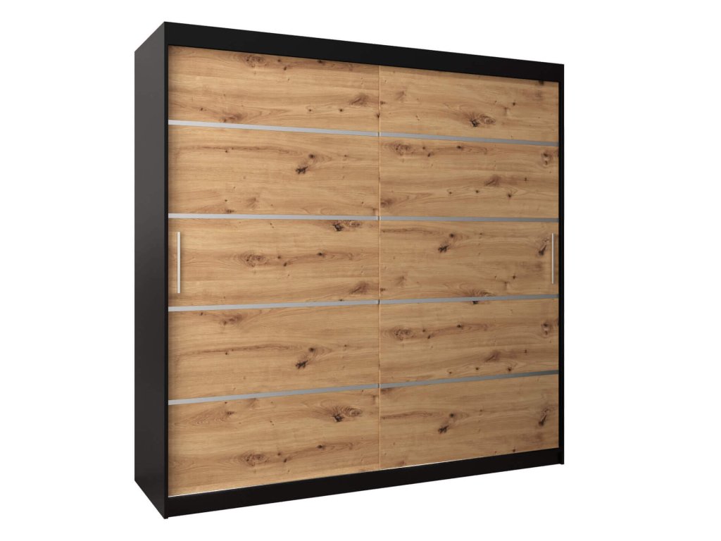 ALYXIA gardróbszekrény 180/200 - fekete/artisan tölgy