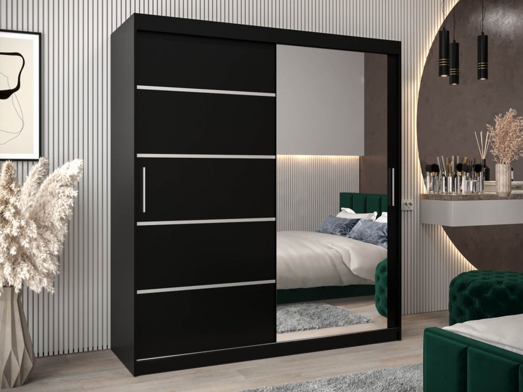 ALYXIA II gardróbszekrény tükörrel 180/200 - fekete