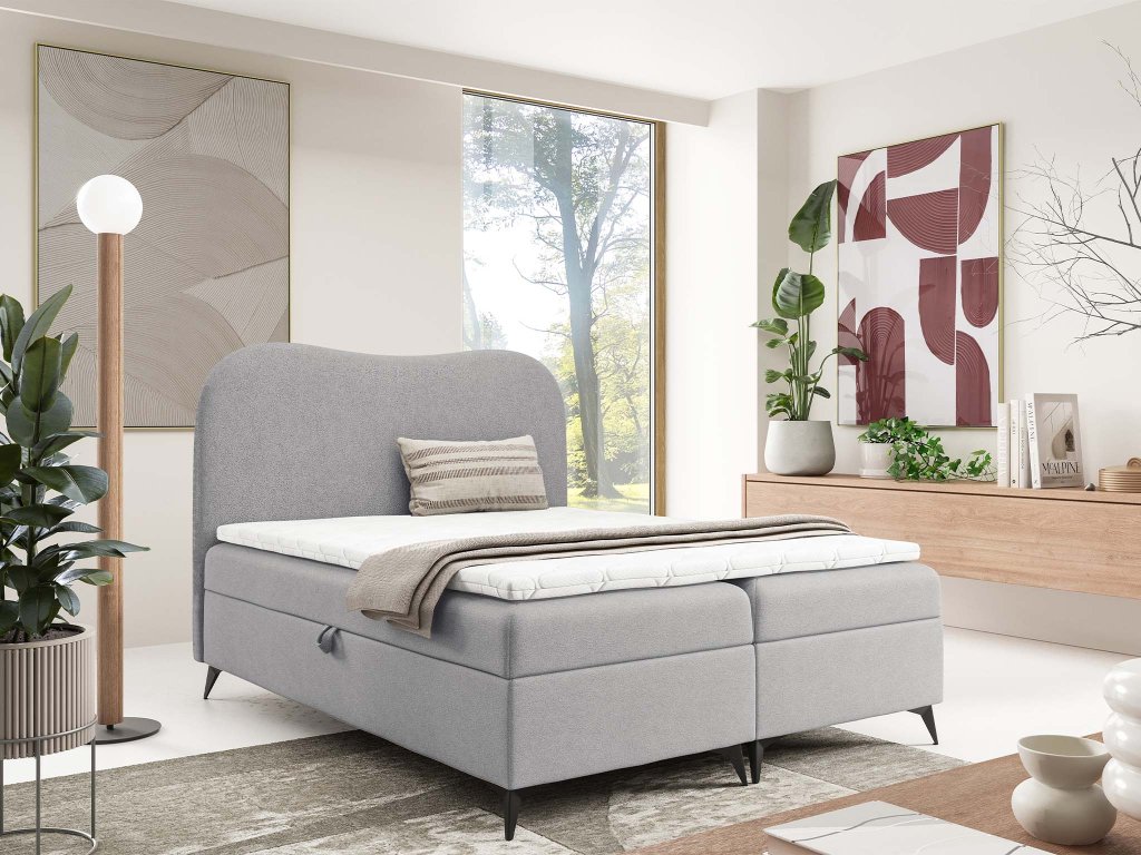 AMBRA kárpitozott boxspring ágy ágyneműtartóval 120x200 - világosszürke
