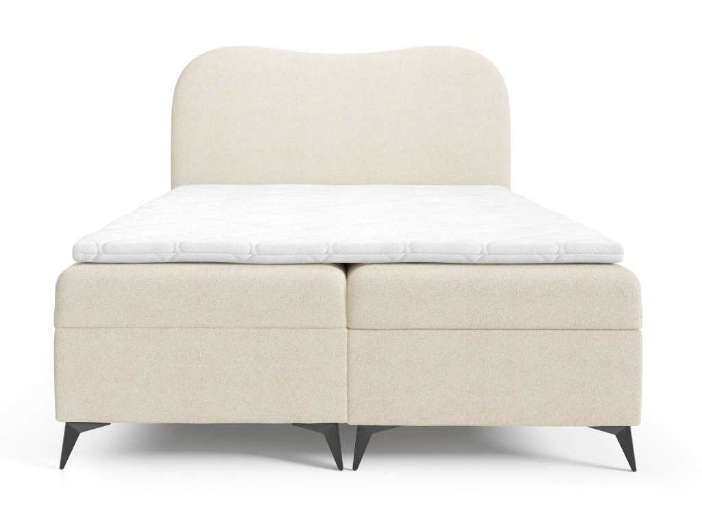 AMBRA kárpitozott boxspring ágy ágyneműtartóval 160x200 - krémszín