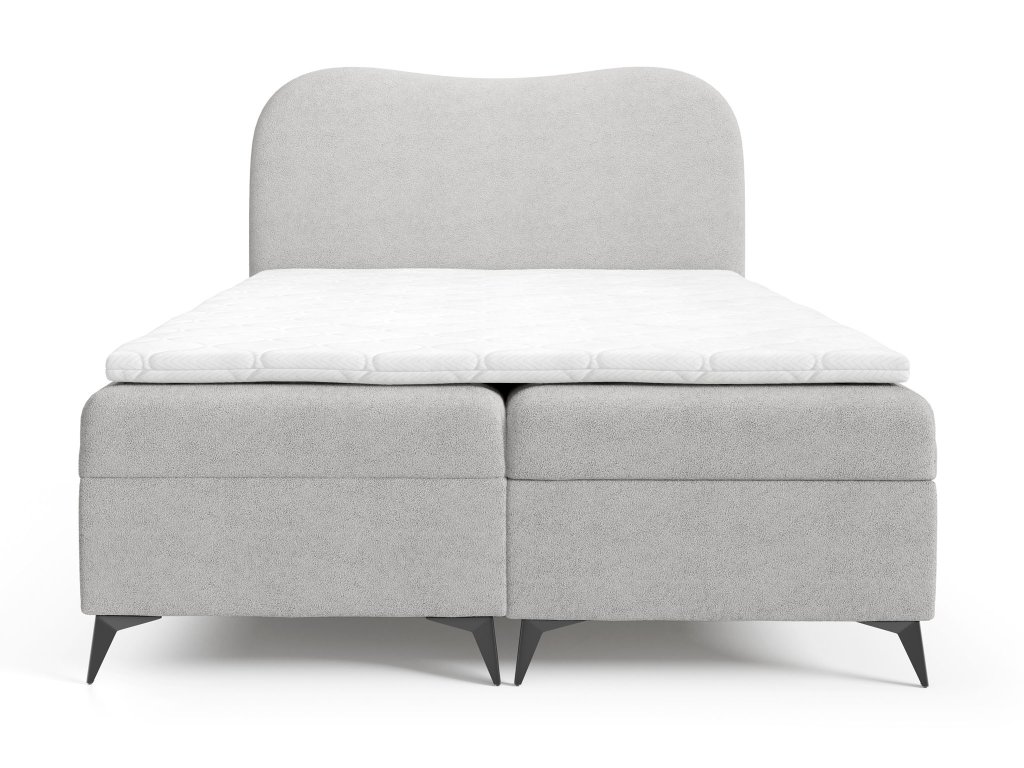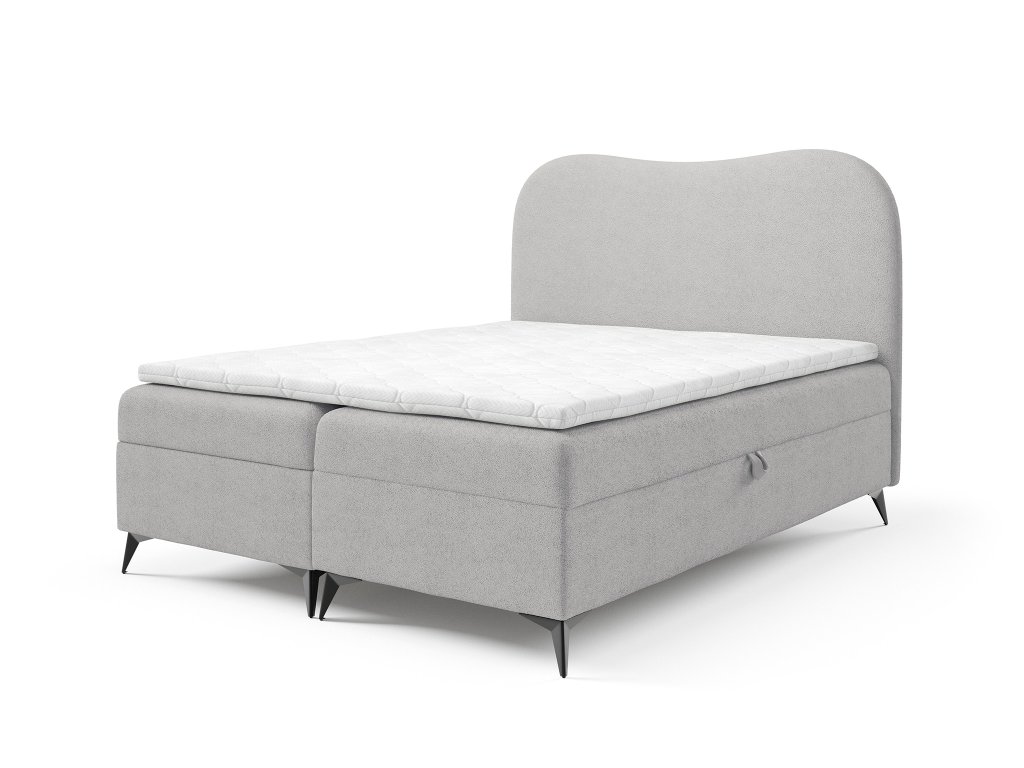 Az ágy alatt két tágas doboz rejtőzik, amelyek alkalmasak ágyneműk, takarók vagy szezonális ruhák tárolására. A rugós mechanizmusnak köszönhetően a kezelés egyszerű és könnyed. Az ágy teljes megjelenését a fekete fém lábak egészítik ki, amelyek modern hatást keltenek és kiemelik a finom kárpitozás elegáns kontrasztját.
