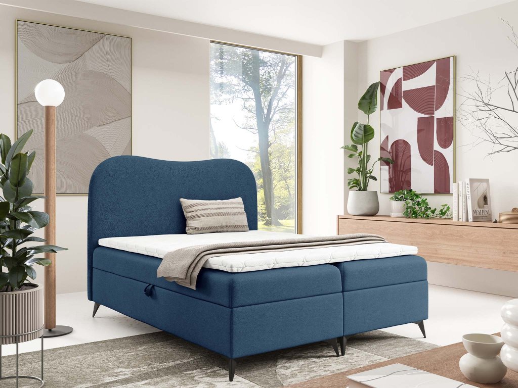 AMBRA kárpitozott boxspring ágy ágyneműtartóval 200x200 - kék