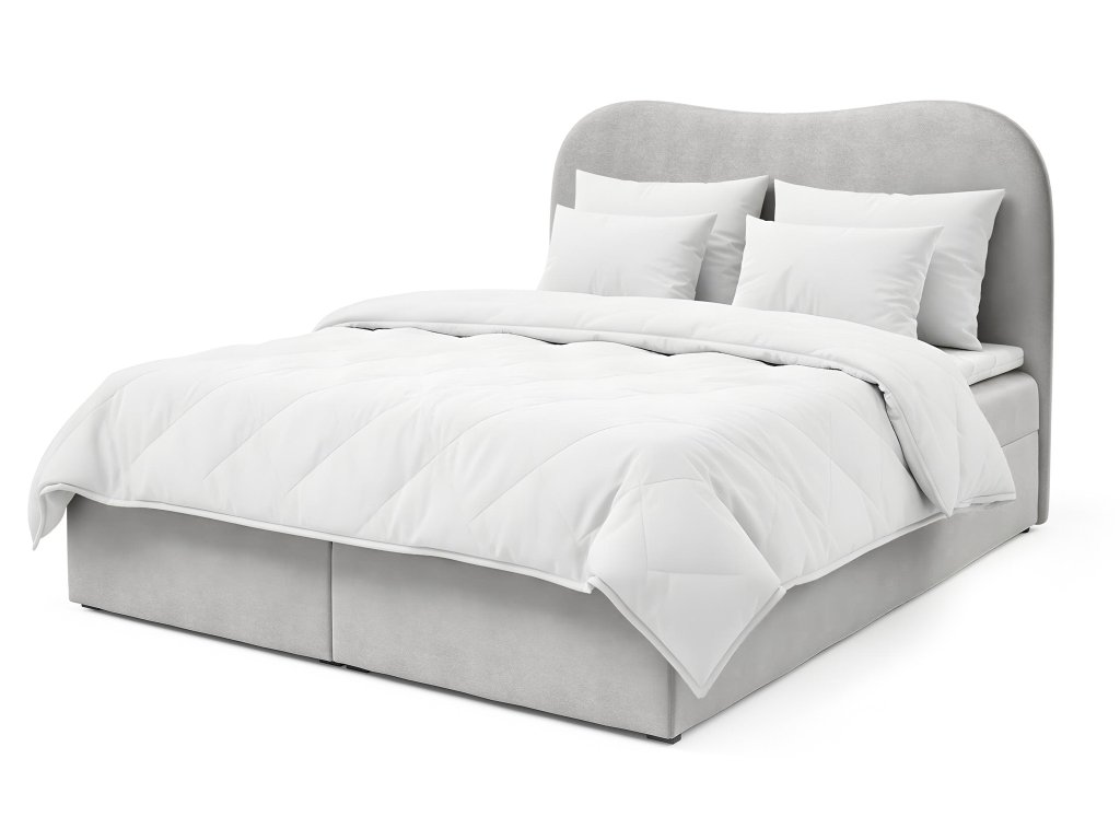 Boxspring ágy Ambra Lux 120x200 méretben azonnal magára vonja a figyelmet világosszürke árnyalatával és puha kárpitozásával. A Gerra szövet nemcsak kellemes tapintású, hanem ellenáll a mindennapi használatnak is. Az elegáns fejtámla a szoba domináns eleme, és a láb nélküli szerkezet stabilitást és modern jelleget kölcsönöz az ágynak.