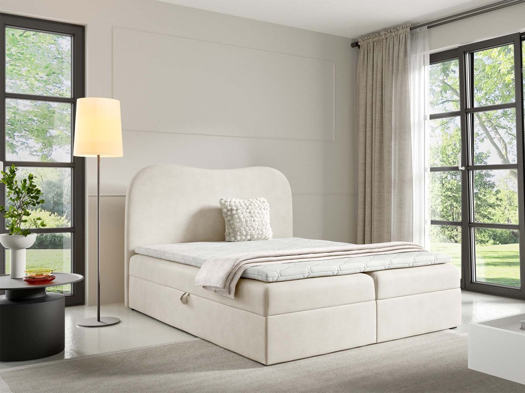 AMBRA LUX kárpitozott boxspring ágy ágyneműtartóval 200x200 - krémszín