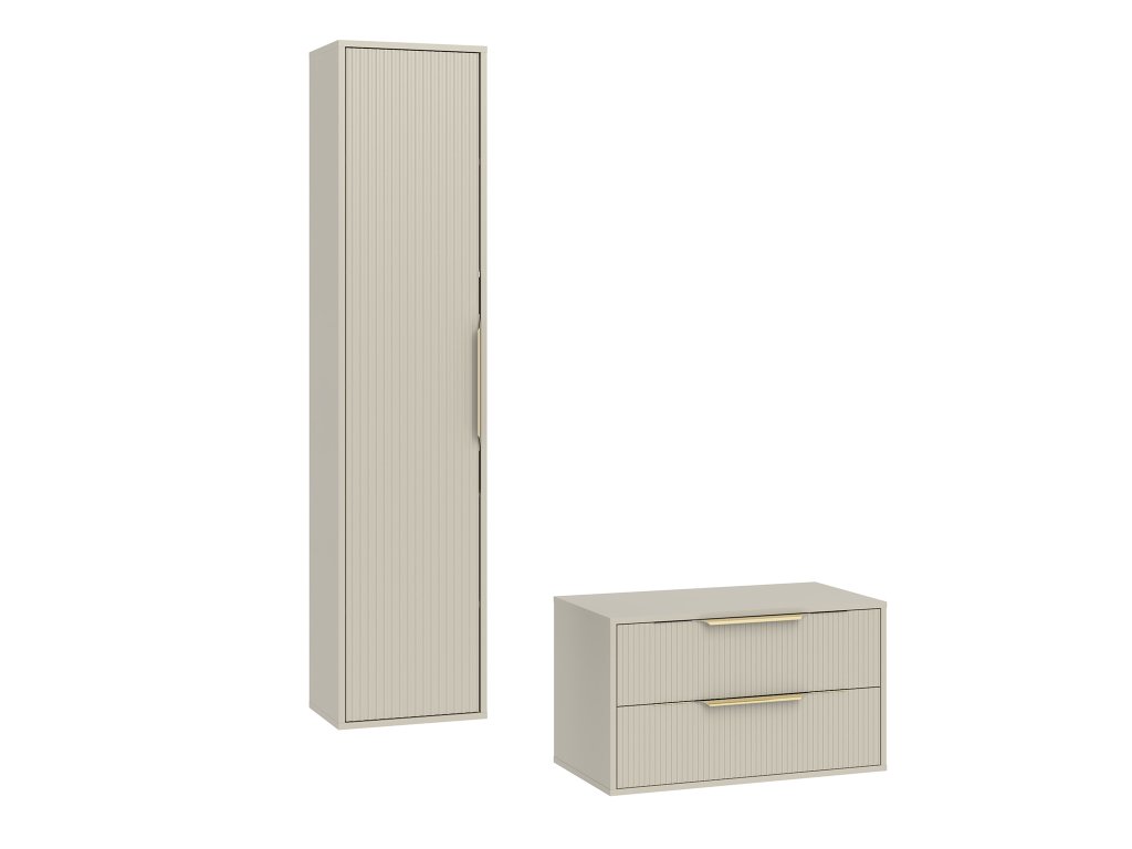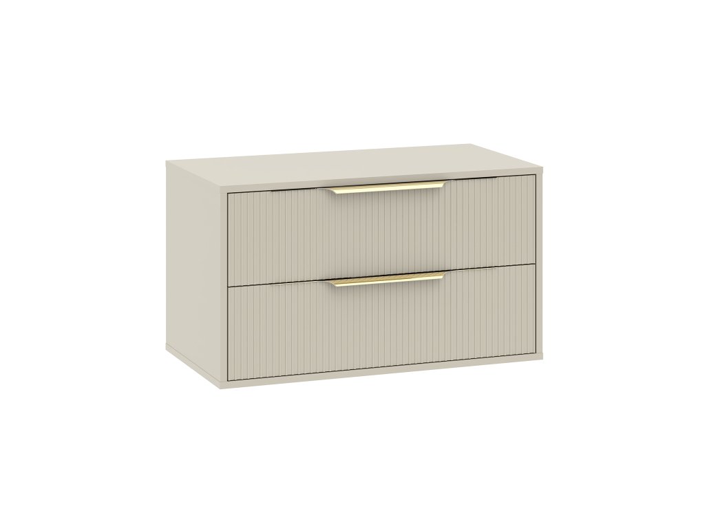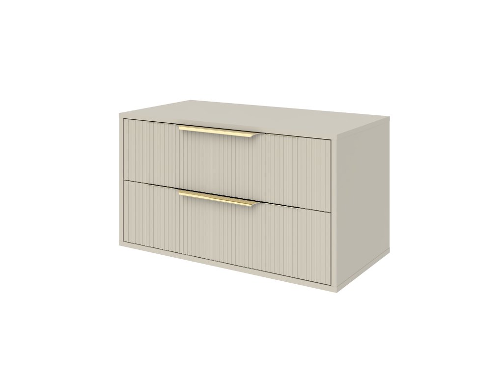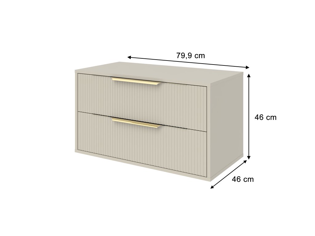 A gyönyörű kasmír színben készült AMIRA mosdószekrény már első pillantásra lenyűgöz mindenkit a modern megjelenésével. A bordázott előlap és a matt arany színű fogantyúk igazán stílusos bútordarabbá varázsolják. A falra szerelhető szekrény két tágas, halk záródású fiókkal rendelkezik, amelyek helyet biztosítanak minden szükséges dolognak a fürdőszobában, a kozmetikumoktól kezdve a hajszárítóig. A felső fiók a szifonhoz van kialakítva. Az átgondolt részletek, mint a vízálló ragasztással ellátott fedőlap vagy a fiókok kialakítása, a bútor minőségéről árulkodnak. A bútorlap előfúrt lyukak nélkül érkezik, így könnyedén hozzáigazítható az adott mosdó típusához.