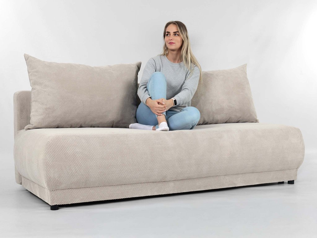 Ez az ágyazható kanapé nemcsak szép, de igazán praktikus is. A könnyen kezelhető kihúzható funkciónak (mechanizmusnak) hála néhány mozdulattal kényelmes ággyá alakítható, amely tökéletes szolgálatot tehet vendégek érkezésekor. A tágas ágyneműtartóban helyet kaphatnak a takarók, párnák vagy az ágyneműhuzatok is. A kanapéhoz tartozó négy díszpárna – két nagyobb és két kisebb – tovább növeli a kényelmet, és még otthonosabbá teszi az összképet.
