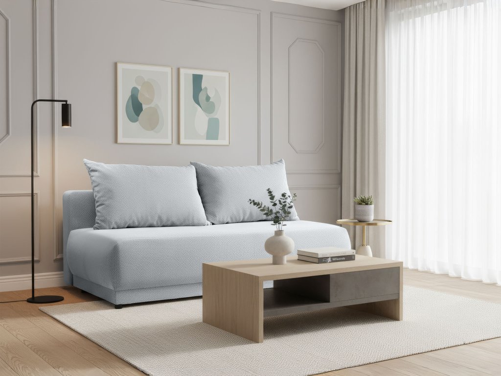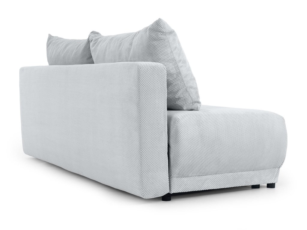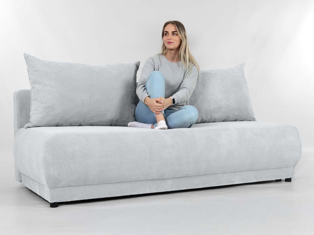 Ez az ágyazható kanapé nemcsak szép, de igazán praktikus is. A könnyen kezelhető kihúzható funkciónak (mechanizmusnak) hála néhány mozdulattal kényelmes ággyá alakítható, amely tökéletes szolgálatot tehet vendégek érkezésekor. A tágas ágyneműtartóban helyet kaphatnak a takarók, párnák vagy az ágyneműhuzatok is. A kanapéhoz tartozó négy díszpárna – két nagyobb és két kisebb – tovább növeli a kényelmet, és még otthonosabbá teszi az összképet.