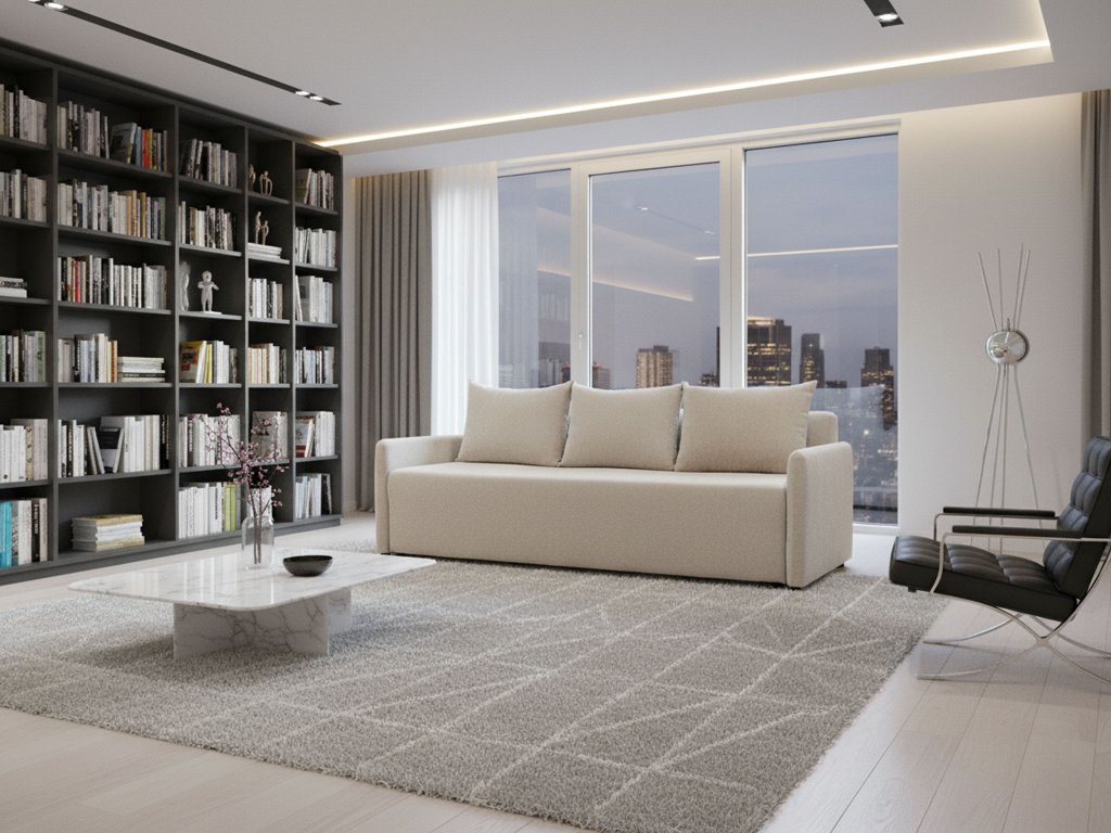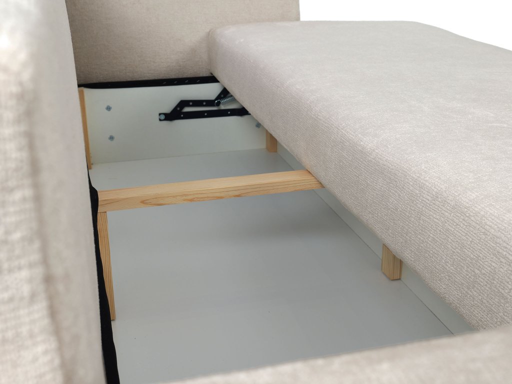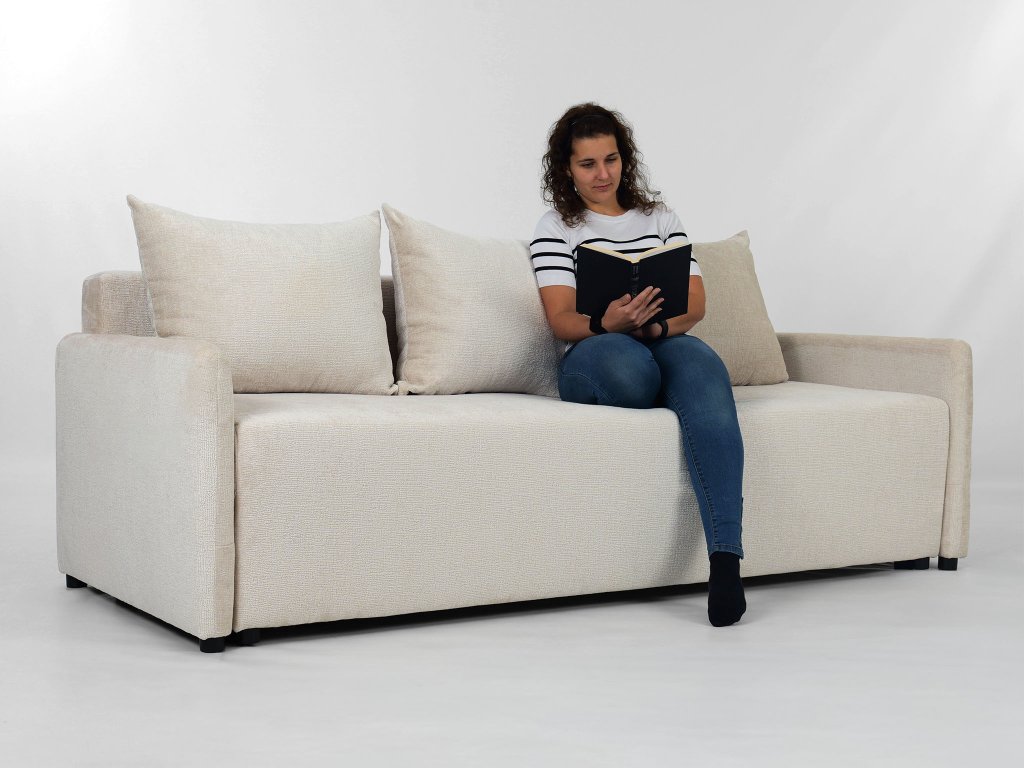 Az Apulia kanapéágyat úgy tervezték, hogy a mindennapokban is a lehető legpraktikusabb legyen. Az automata mechanizmusnak köszönhetően egyetlen mozdulattal ággyá alakítható, amelyet biztosan értékelni fog vendégek érkezésekor. Az ülőrész alatt pedig tágas ágyneműtartó kapott helyet. A Perfect Harmony krémszínű szövet, amellyel a kanapéágy kárpitozott egy minőségi kárpitszövet, amely kellemes tapintású, rendkívül ellenálló a kikopással szemen és könnyen tisztítható. Ezeknek a tulajdonságoknak köszönhetően az Apulia hosszú időn át megőrzi majd szépségét és kényelmességét. A két kerek díszpárna is a csomagolás részét képezi.