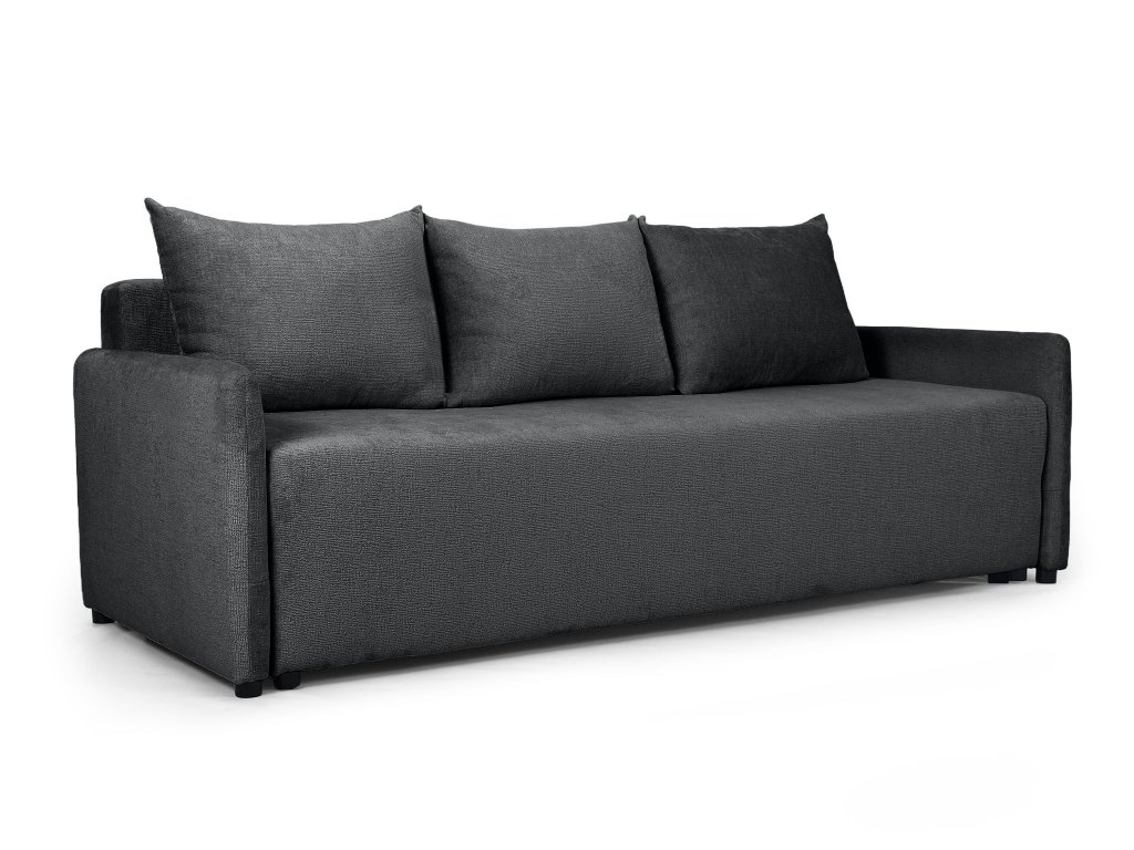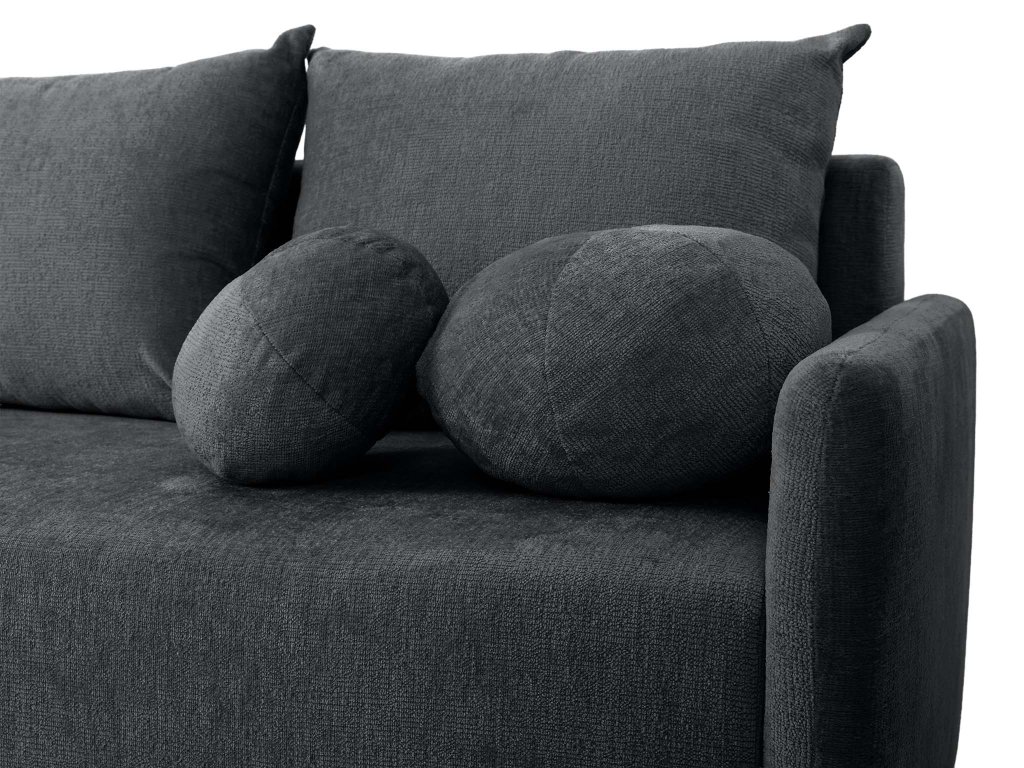 A sötétszürke APULIA kanapágy egyszerű, szofisztikált kinézettel rendelkezik. Gyönyörű díszpárnák díszítik, amelyek biztosítják a kényelmet is. Bármely otthonban remekül mutat – legyen szó modern, klasszikus vagy skandináv stílusú lakásokról is. Az ágyazható kanapé sötétszürke szövettel kárpitozott, amely friss, harmonikus megjelenést kölcsönöz a bútornak. Ez a szín könnyen kombinálható más színekkel és kiegészítőkkel. A Harmony szövet nagyon kellemes tapintású és finom textúrával rendelkezik, amelyet biztosan értékelni fog a mindennapok során. A három puha háttámlapárna még nagyobb kényelmet garantál. Az ágynemátartós kanapé hosszú élettartamát a tömör fából és forgácslapból készült stabil váza garantálja, míg a Bonell rugók és a T30-as hab tökéletes egyensúlyt teremtenek a kényelem és az alátámasztás között. A visszafogott fekete műanyag lábak diszkréten egészítik ki a dizájnt.