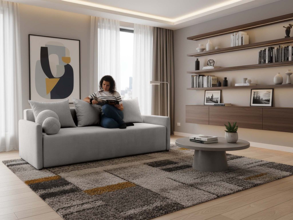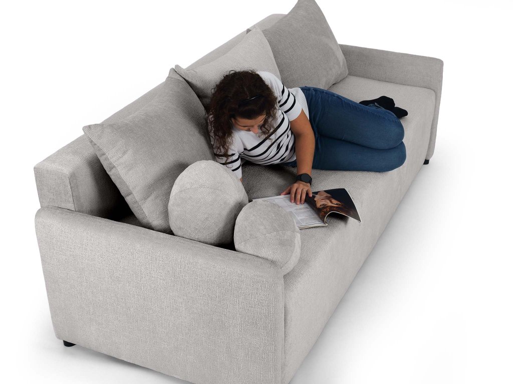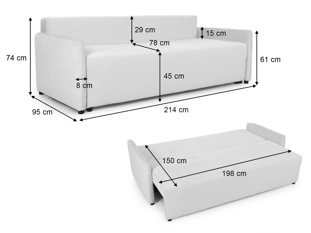 Az Apulia kanapéágyat úgy tervezték, hogy a mindennapokban is a lehető legpraktikusabb legyen. Az automata mechanizmusnak köszönhetően egyetlen mozdulattal ággyá alakítható, amelyet biztosan értékelni fog vendégek érkezésekor. Az ülőrész alatt pedig tágas ágyneműtartó kapott helyet. A Perfect Harmony világosszürke szövet, amellyel a kanapéágy kárpitozott egy minőségi kárpitszövet, amely kellemes tapintású, rendkívül ellenálló a kikopással szemen és könnyen tisztítható. Ezeknek a tulajdonságoknak köszönhetően az Apulia hosszú időn át megőrzi majd szépségét és kényelmességét. A két kerek díszpárna is a csomagolás részét képezi.