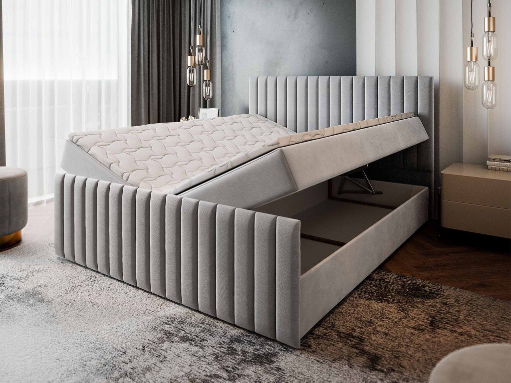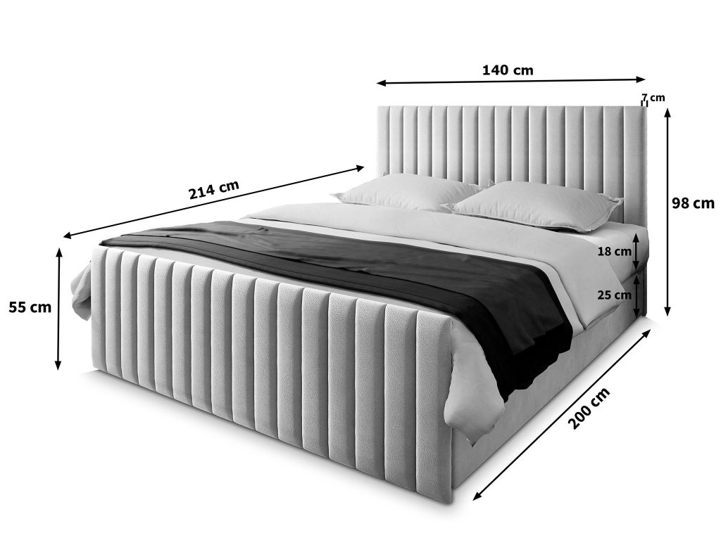 ARION kárpitozott boxspring franciaágy 140x200 – világosszürke