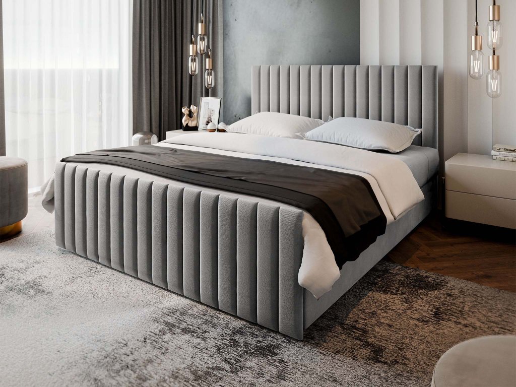 ARION kárpitozott boxspring franciaágy 160x200 – világosszürke