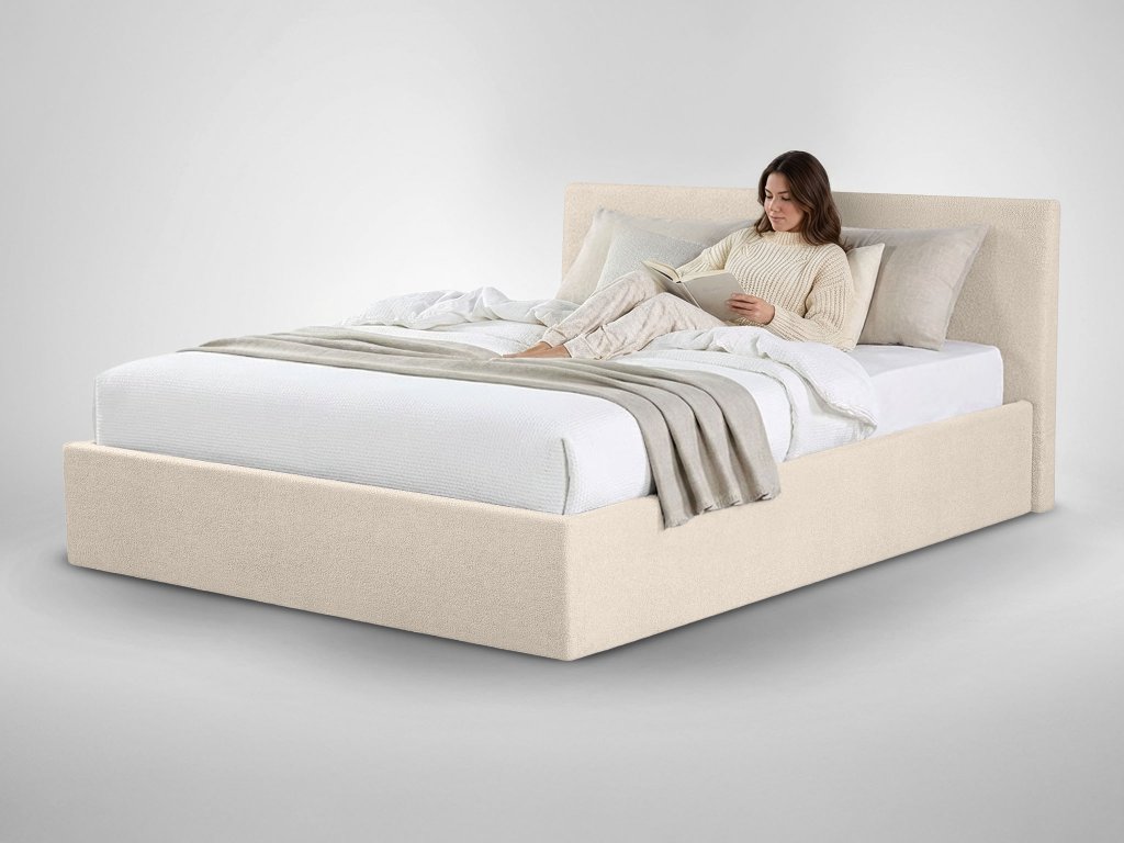 ASCRONA kárpitozott franciaágy ágyneműtartóval 160x200 - bézs
