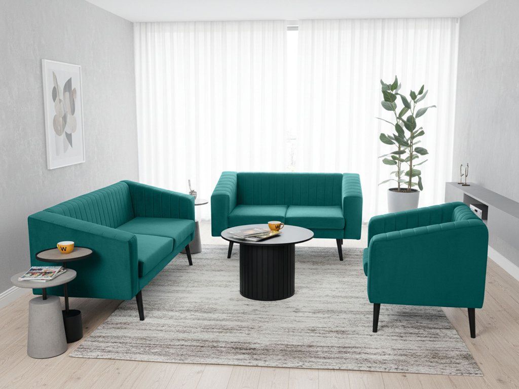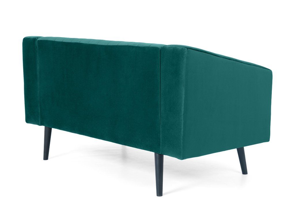 Stílusos zöld ASPREY kétszemélyes kanapé, amely minden belső térbe megfelelő választás. Különleges kinézetének köszönhetően tökéletesen megtalálja a helyét az irodában, a dolgozószobában, a tárgyalóban vagy akár várótermekben vagy éttermekben is. A gyönyörű külalakján emel a háttámlán és a kartámla belső részén található dísz steppelés. Minőségi velúrral kárpitozott, amely igazán puha és kellemes tapintású. A kétszemélyes kanapé borovi fenyőből készült tömör fa lábakon áll fekete színben.