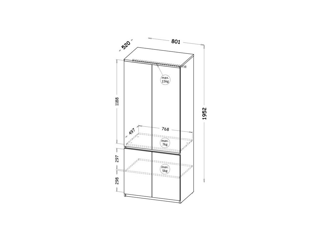Típus: | Keskeny, Nyílóajtós szekrények |