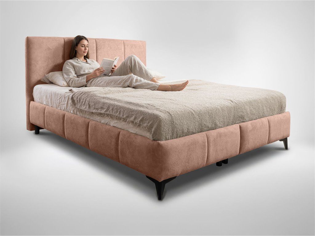 ATHÉN kárpitozott ágyneműtartós franciaágy 160x200 - barackszín