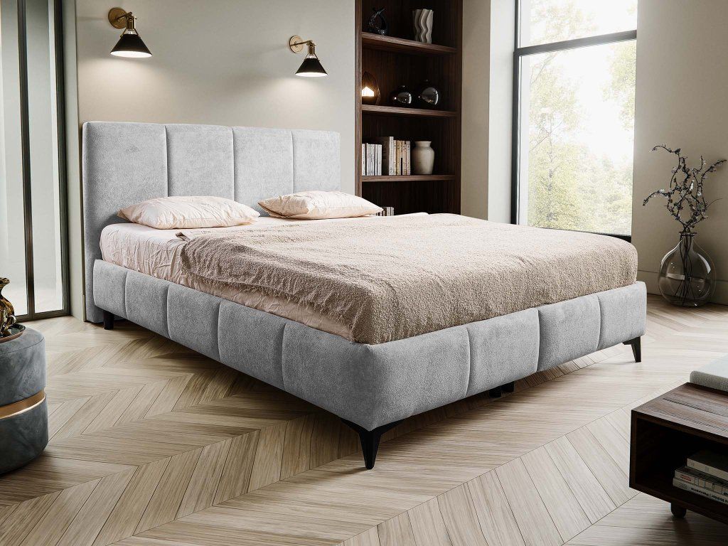 ATHÉN kárpitozott ágyneműtartós franciaágy 160x200 - szürke