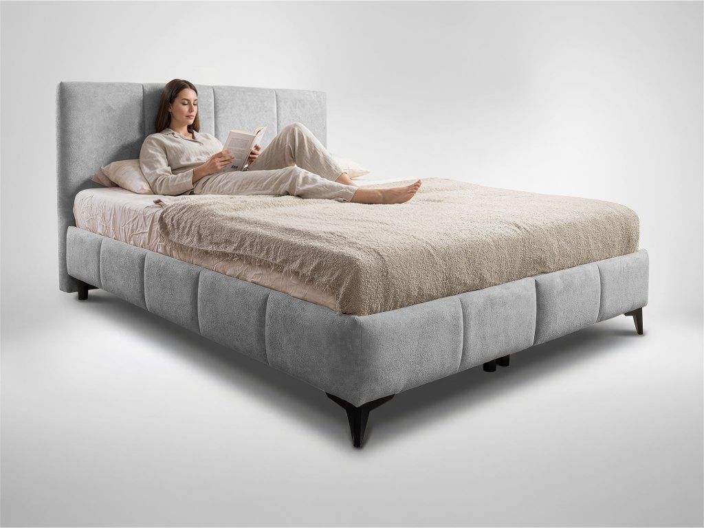 Ennek a modellnek a különlegességét a prémium Monolith szövetkárpitozás teszi teljessé, amely a szürke tónusnak luxus mélységet és finom árnyékjátékot kölcsönöz. Ezt a szövetet az igényes felhasználók számára tervezték – rendkívül puha tapintású, ugyanakkor innovatív védőréteggel van ellátva. A hidrofób felület lepergeti a folyadékokat, amelyek a beszívódás helyett apró cseppek formájában maradnak meg a felületen. Így az ágy ellenáll a mindennapi kihívásoknak, hosszú éveken át megőrzi higiénikus tisztaságát és telt színét, miközben minden alkalommal bársonyos kényelmet nyújt. Praktikus bónusz a magas lábak megléte, amelyek megkönnyítik a takarítást és lehetővé teszik a robotporszívó áthaladását.