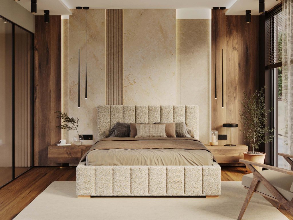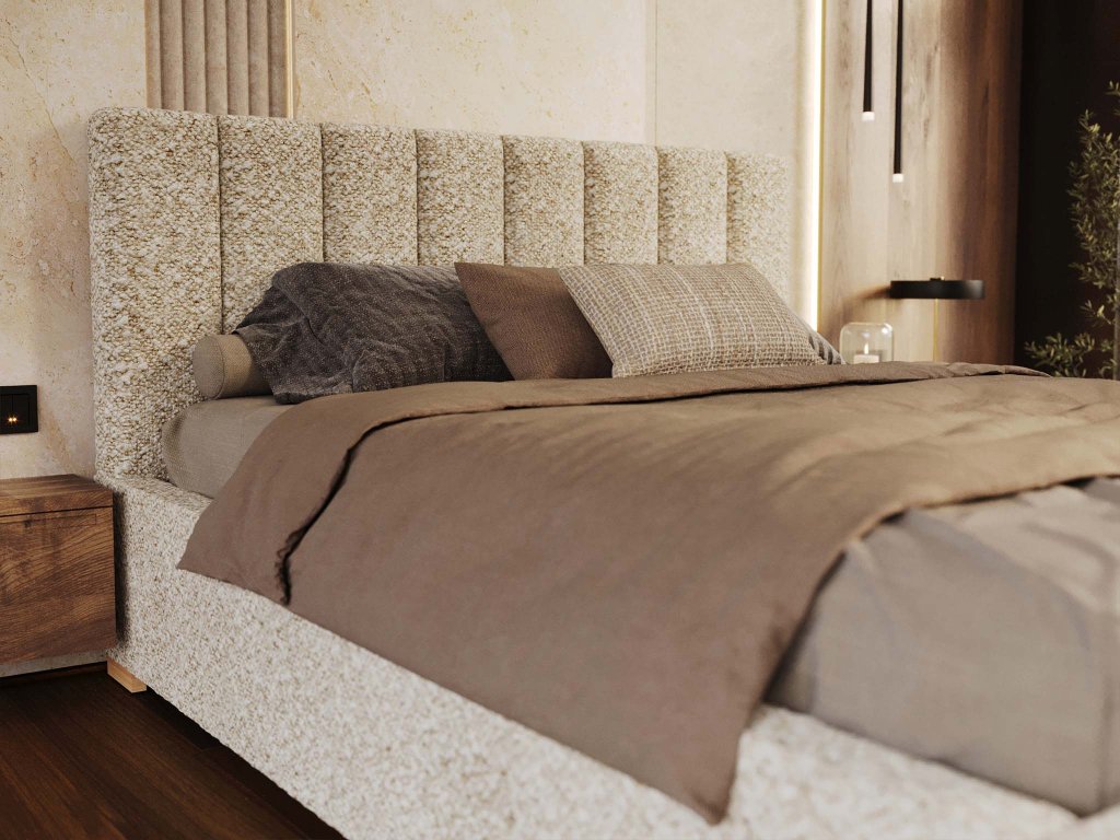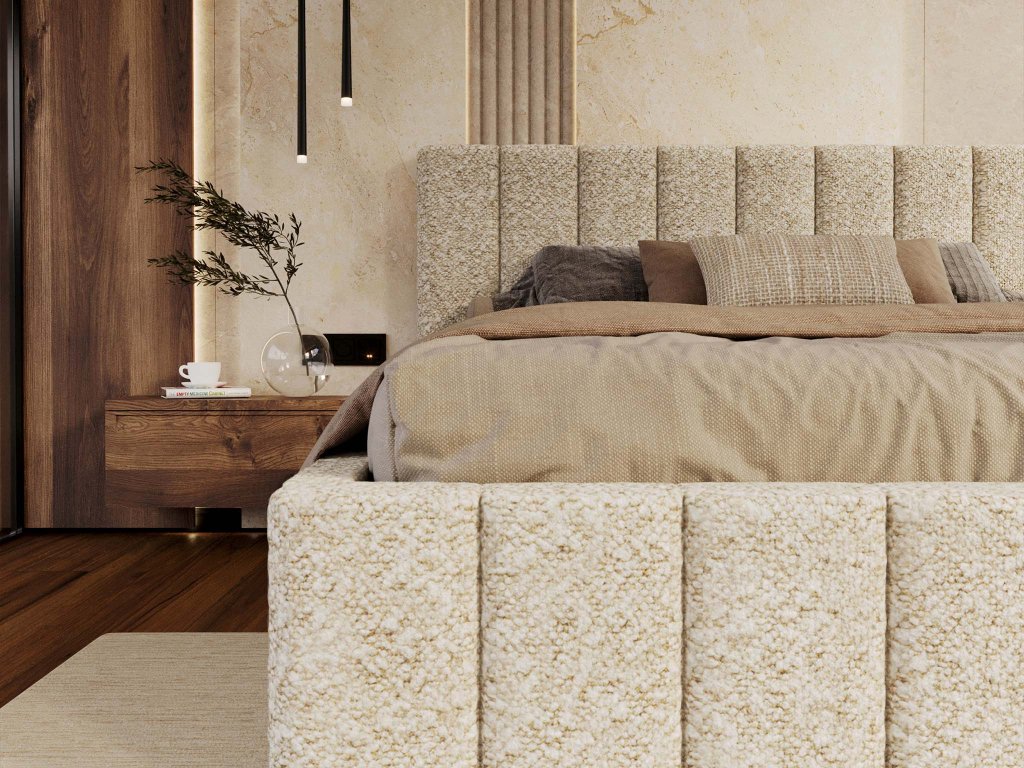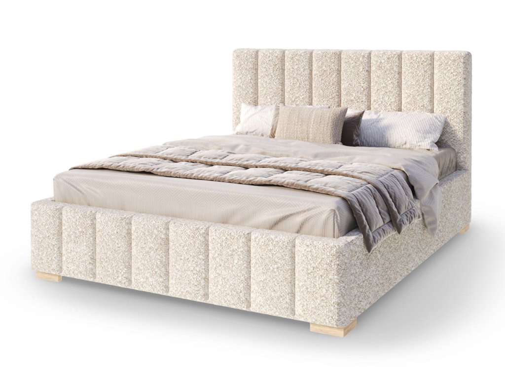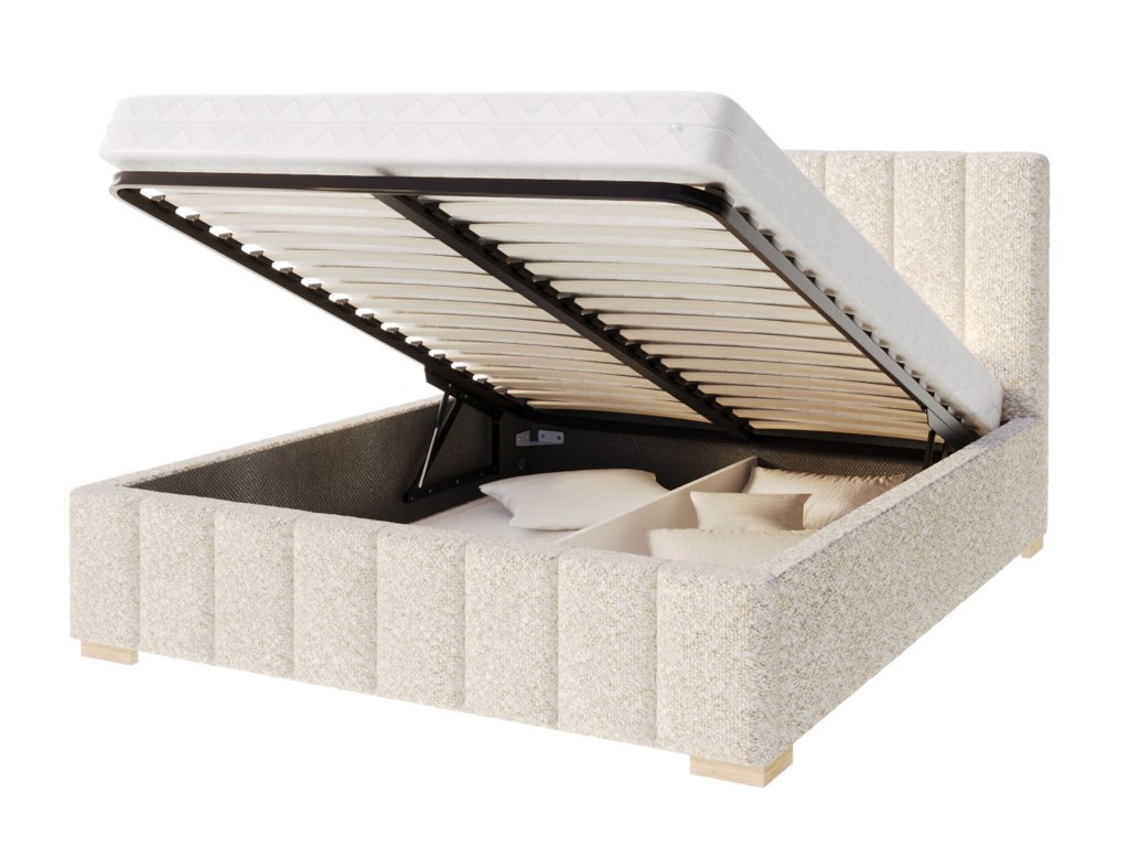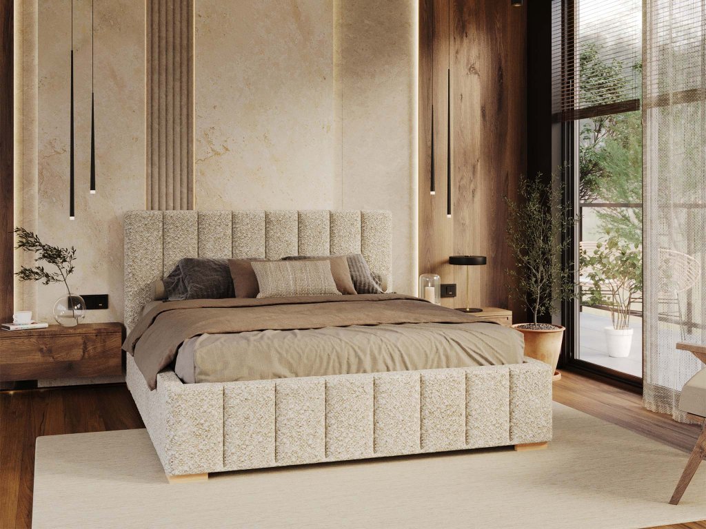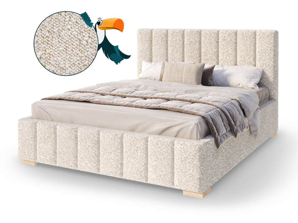 AUSTIN II kárpitozott ágyneműtartós franciaágy 180x200 - krémszínű