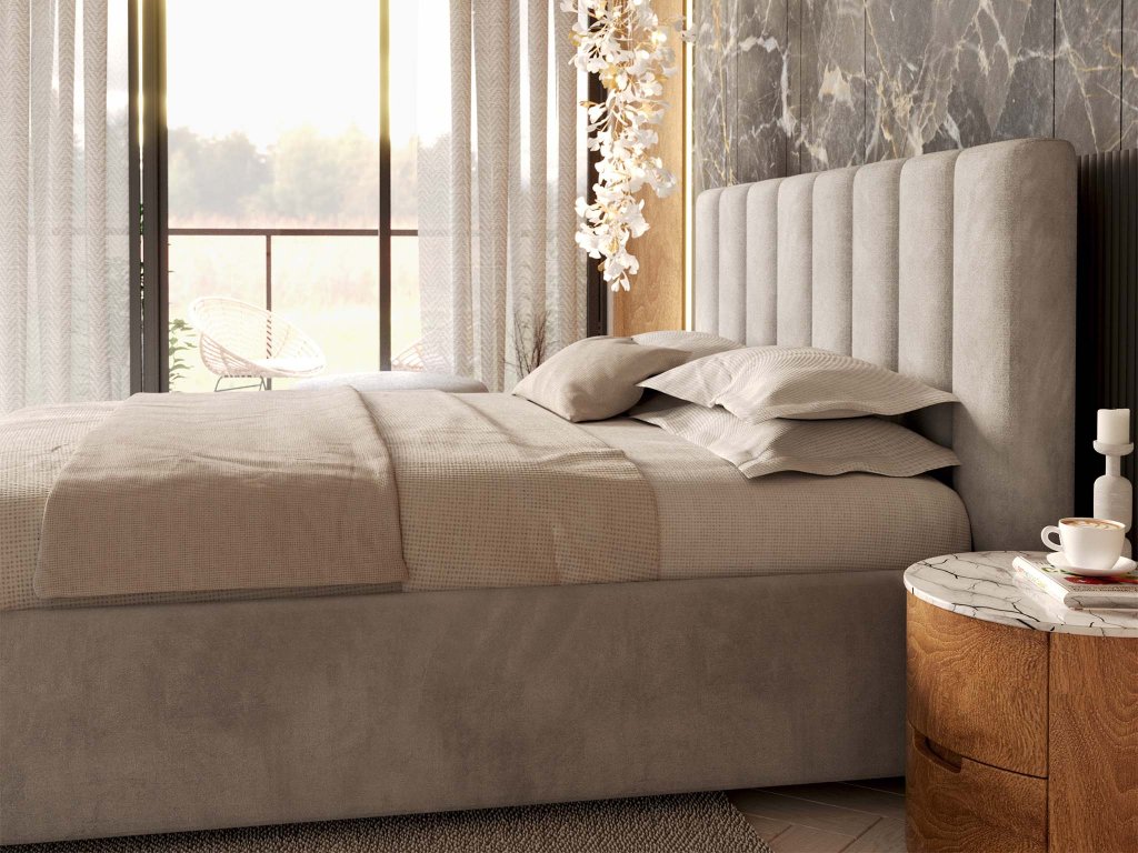 AUSTIN kárpitozott ágyneműtartós franciaágy 140x200 - szürke