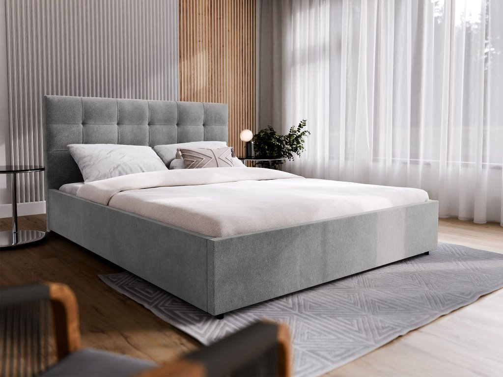 AVELA kárpitozott ágyneműtartós franciaágy 180x200 - szürke