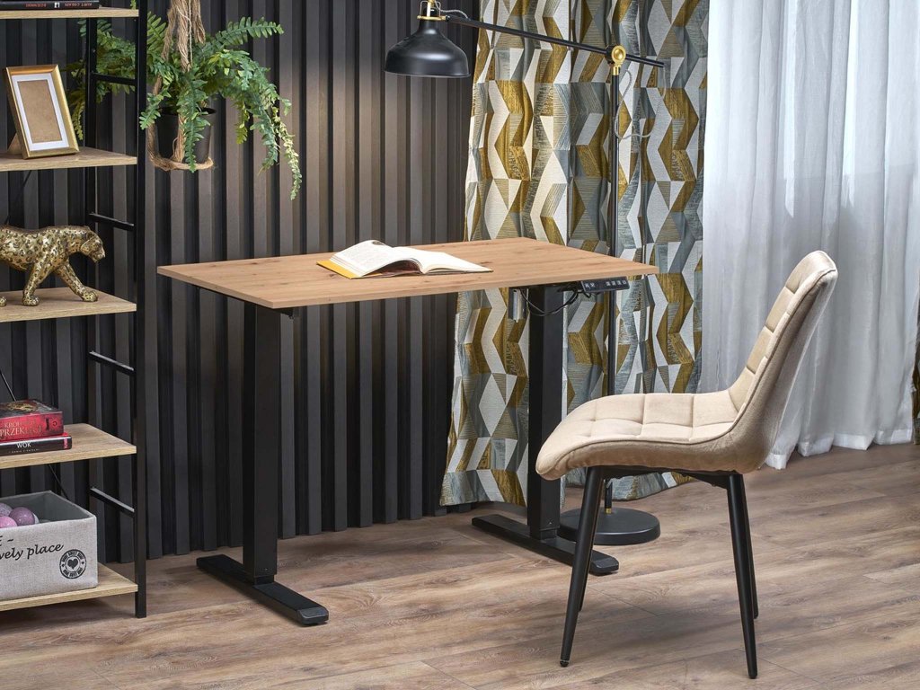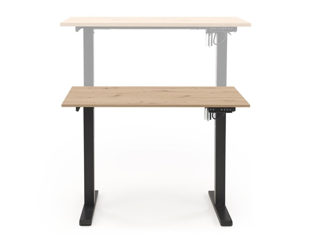 Az artisan tölgy és fekete szín kombinációjában készült B53 elektromosan állítható magasságú íróasztal egy modern és praktikus munkaasztal, amely alkalmazkodik az ember igényeihez. Az egyszerű vezérlésének hála könnyen beállítható a munkalap magassága, amely 73 és 118 cm között mozog. Így ülve vagy akár állva is dolgozhat, elősegítve a helyes testtartást egész nap.