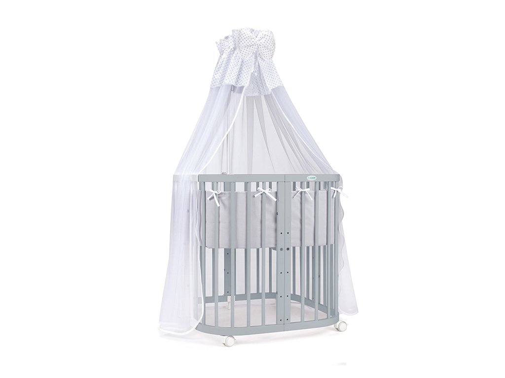 Pöttyös baldachin a 7az1-ben kiságyhoz lányos és fiús gyerekszobába aranyos masnival. A kiságy a baldachinnak köszönhetőn sokkal kellemesebb és melegebb hatást kelt. A baldachintartó speciális fogantyúk segítségével rögzíthető a babaágyakhoz. 100 % pamut és enyhén átlátszó voile kombinációjában készül. Különböző színváltozatokban elérhető. Csak válassza ki az Önnek leginkább tetszőt. A baldachinhoz ágyneműhuzatot is választhat ugyanolyan színben.