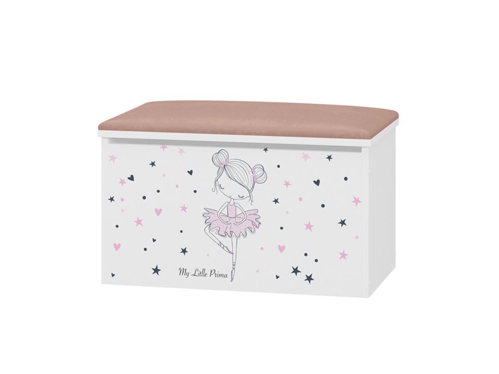 Játéktároló láda a Ballerina kollekcióból rózsaszín kárpitozott ülőkével. A játéktároló nemcsak gyermekét, hanem Önt is megörvendezteti, ugyanis a gyerekszobában mindig biztosítva lesz a rend. Egyetlen játék sem marad a földön szanaszét. A puha kárpitozott ülőkének köszönhetően pedig padként vagy lócaként is használhatja.