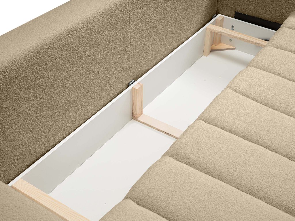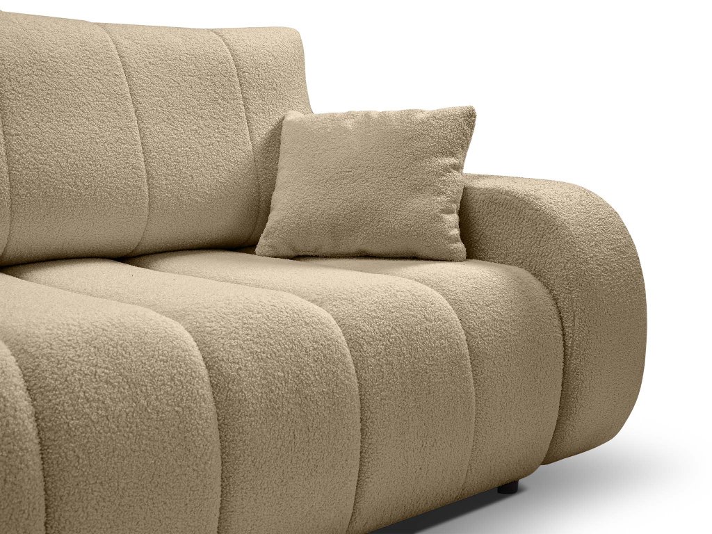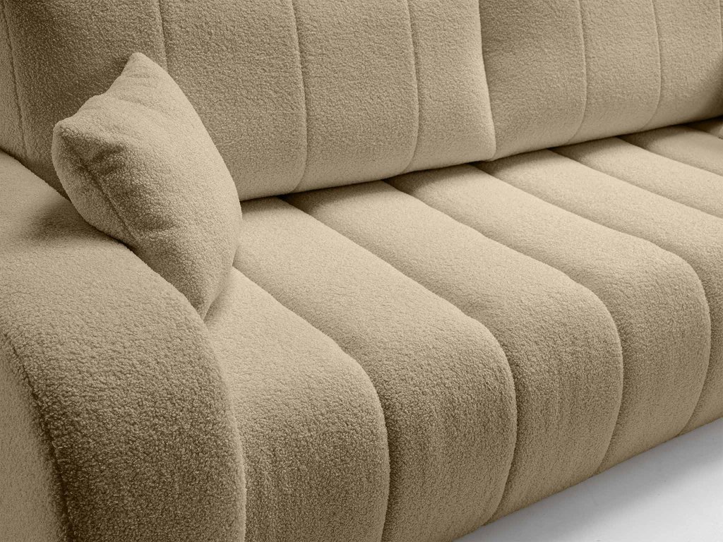 A Baloo kanapéágy minőségi krémszínű Lambi szövettel van kárpitozva. Ez a kárpitszövet puha, kellemes tapintású és vízálló. Ennek köszönhetően könnyen tisztán tartható. Így ideális választást jelent gyermekes családok számára vagy azoknak, akik bent tartják a házi kedvencüket.
