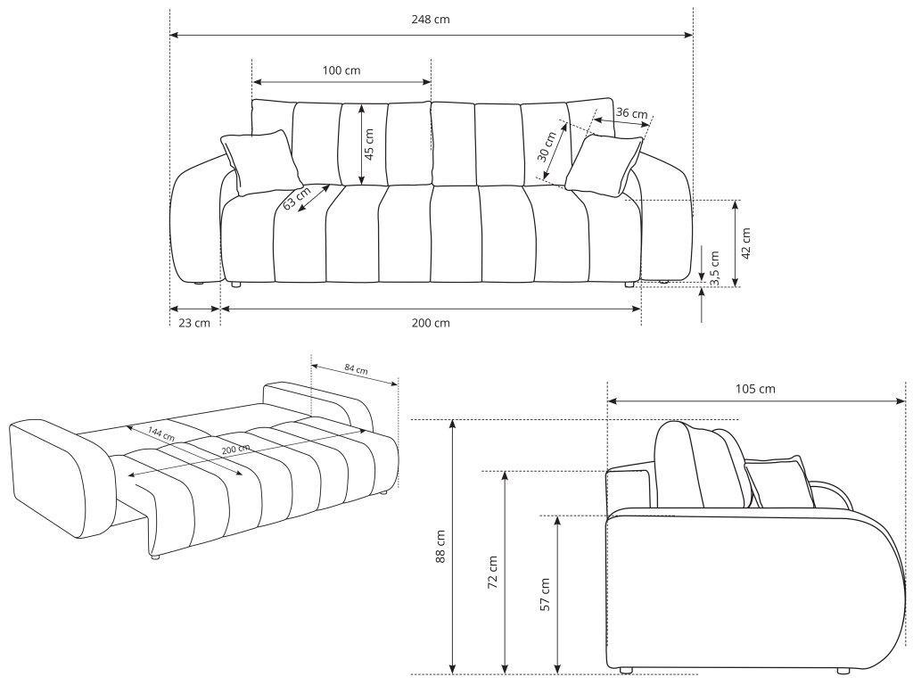 - Fekhely mérete: 144 x 200 cm