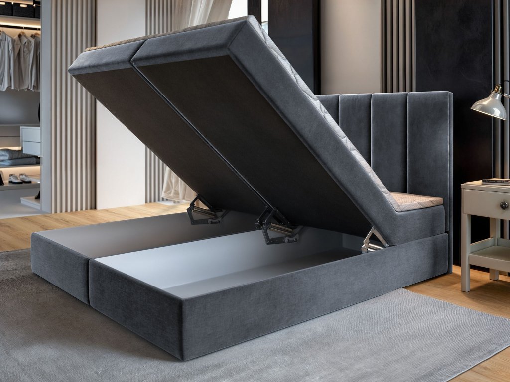 BARINO ágyneműtartós kárpitozott boxspring ágy matraccal 180x200 - sötétszürke
