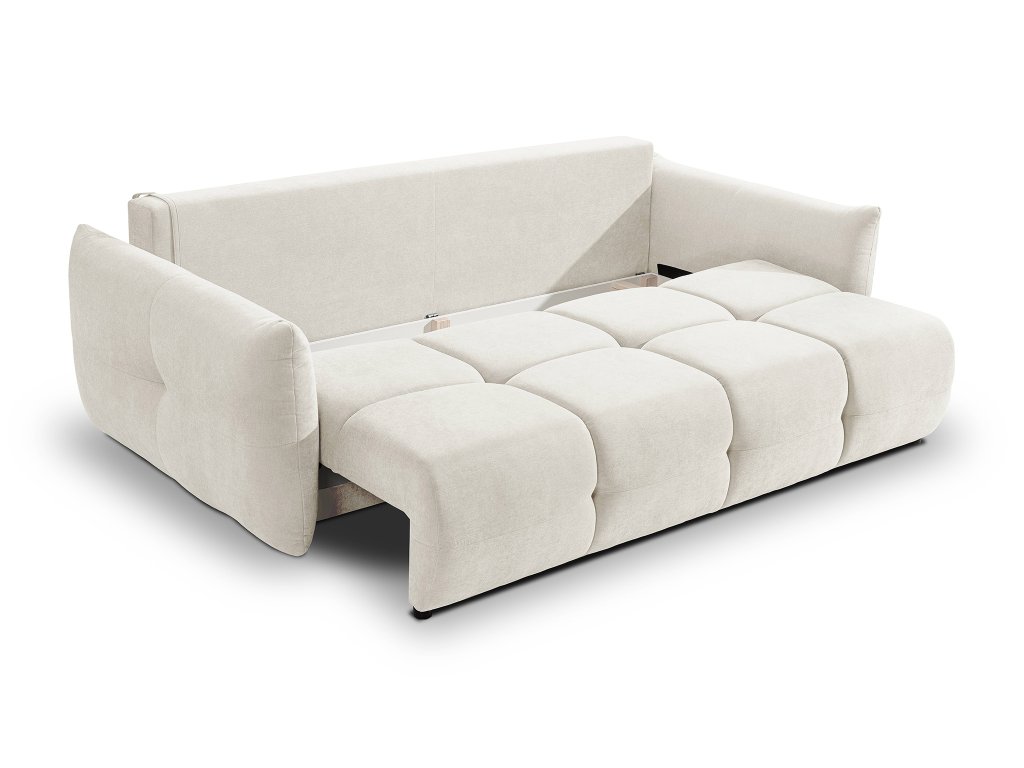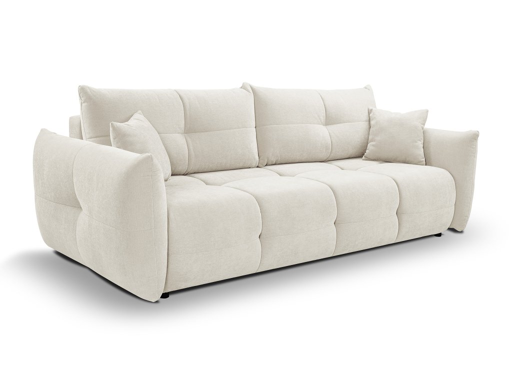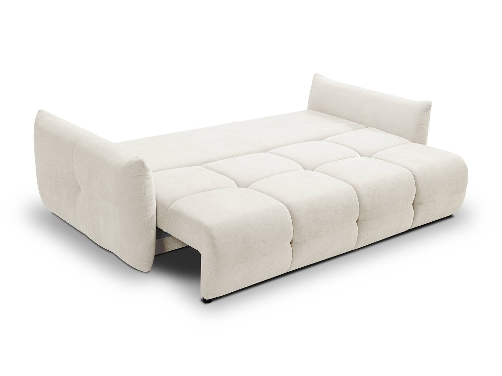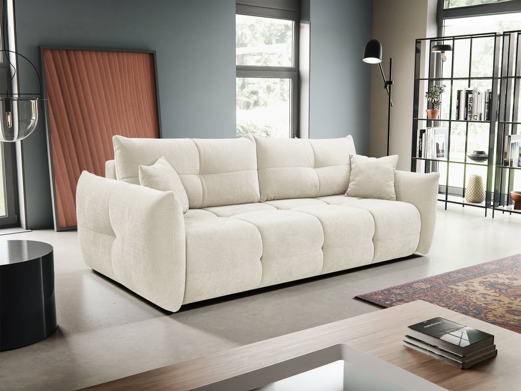 A BASE kárpitozott krémszínű ágyazható kanapé mindenki számára tökéletes választás. A kanapéágy maximális kényelmet és modern megjelenést garantál. A nagy és puha háttámlaként szolgáló párnák igazán jó szolgálatot tesznek tévénézés vagy olvasás közben. A különleges oldaltámlák és párnák is elegáns steppeléssel díszítettek, amely érdekes megjelenést kölcsönöz a kanapénak. A kanapé felülete WIND szövettel kárpitozott, amely 100 % poliészterből készült, 230 g/m² grammsúllyal. Ez a szövet nemcsak kellemes tapintású, de kellően ellenálló is. Az ülőfelület gyártásához használt PUR hab biztosítja a kényelmet és a megfelelő alátámasztást, így minden, ezen a kanapén eltöltött pillanatot élvezhet. A Base kanapéágy automata DL típuső szétnyitó mechanizmussal rendelkezik, amely megkönnyíti a kanapé kényelmes vendégággyá alakítását. A kanapé kihúzása után egy 144 x 200 cm fekhelyet kap majd. Ehhez még vásárolhat egy minőségi fedőmatracot és vendégei haza sem akarnak majd menni. Ráadásul az ülőfelület alatti ágyneműtartó tároló hely tökéletes helyet biztosít az ágyneműnek vagy más olyan tárgyaknak, amelyeket a keze ügyében szeretne tudni. A kanapé háta is kárpitozott, amely lehetővé teszi, hogy a kanapét a szoba bármely pontjára elhelyezze, nem csak a fal mellé.