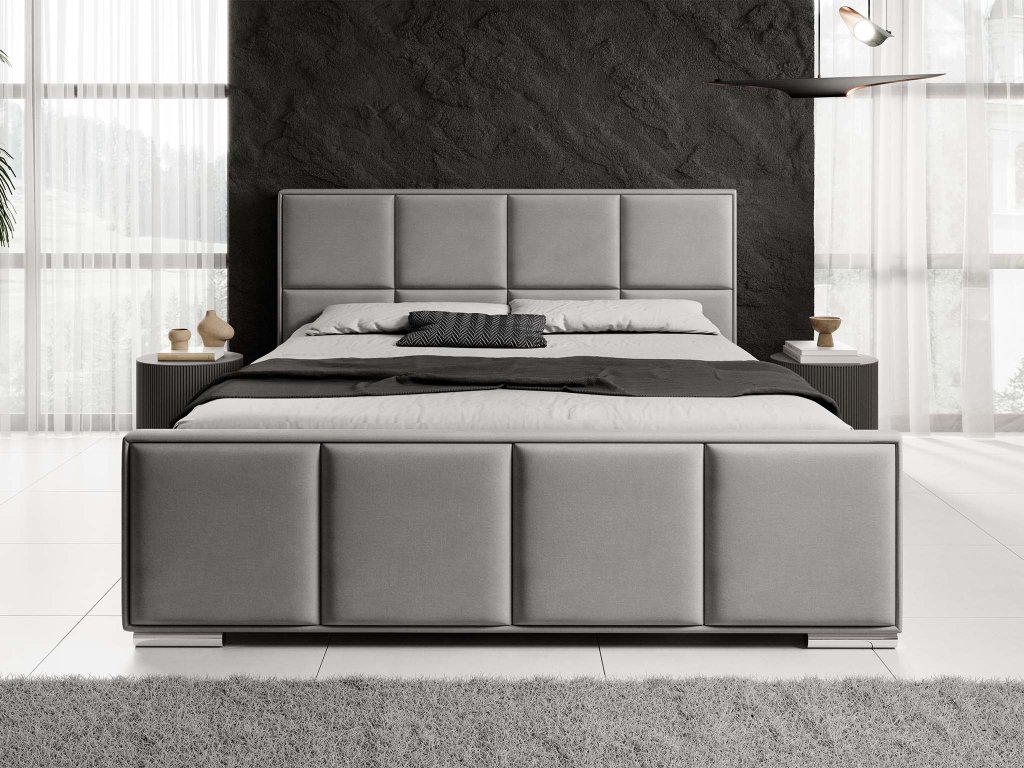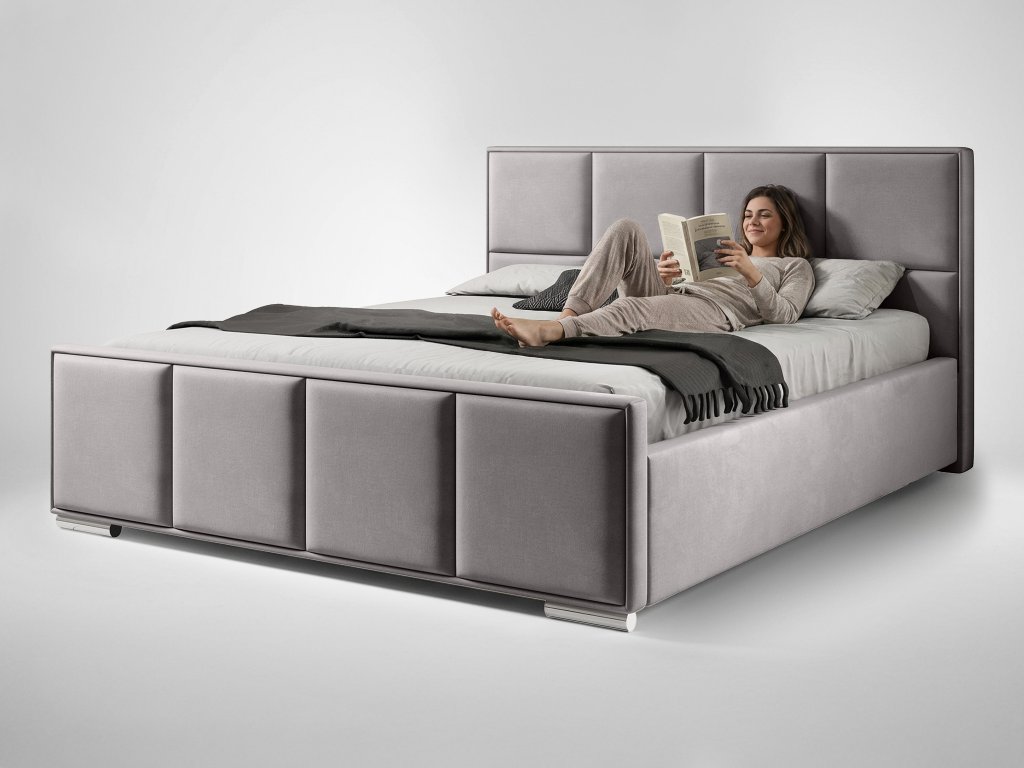 Kárpitozott Bella ágy ideális kombinációja a modern megjelenésnek, a kényelemnek és a praktikus megoldásoknak. Tiszta dizájnjának és finom Velluto szövet kárpitozásának köszönhetően a hálószobában luxusos és egyben otthonos hatást kelt. A szerkezet stabilitását króm lábak egészítik ki, amelyek könnyedséget és stílusos, légies karaktert adnak az ágynak.