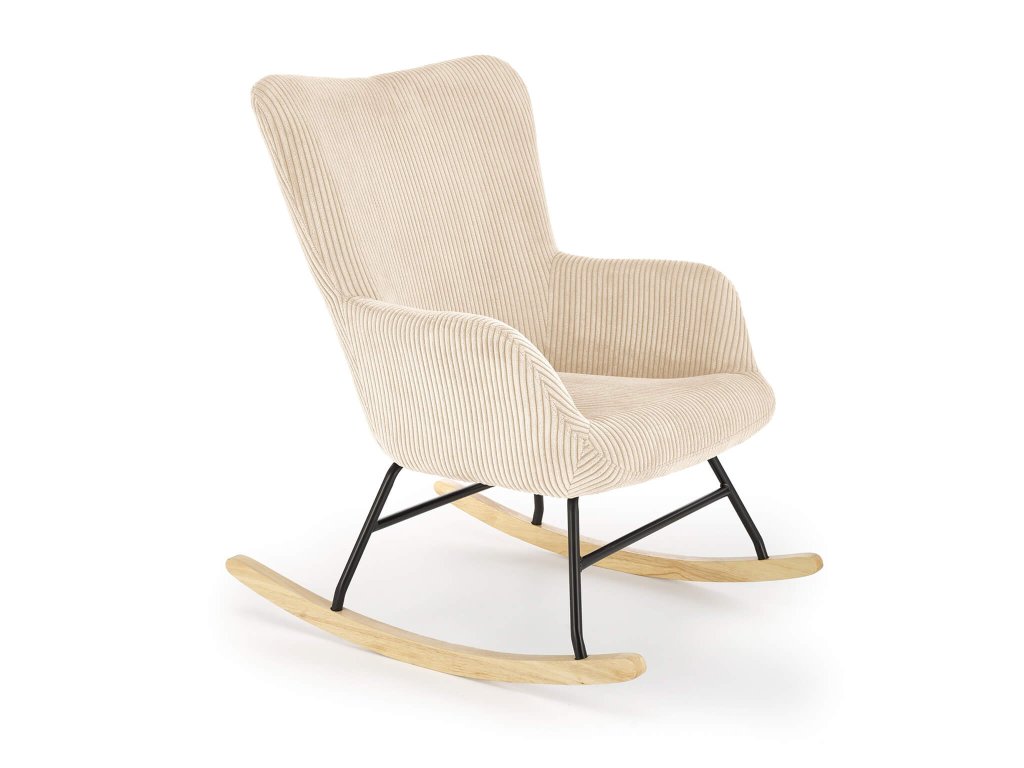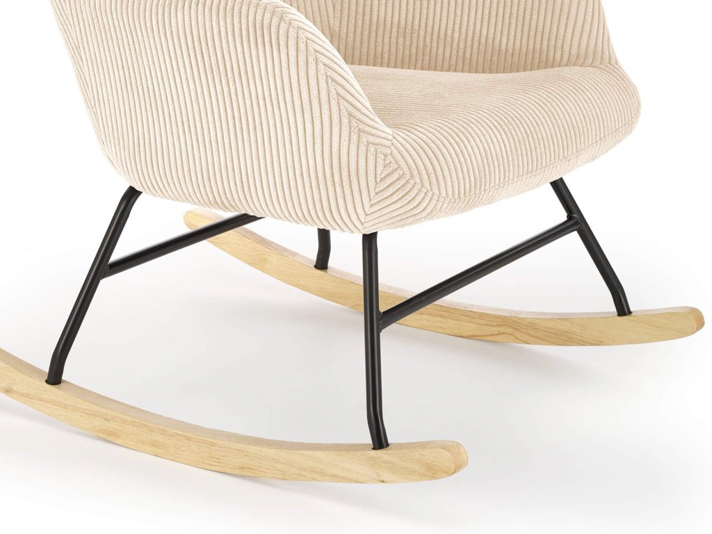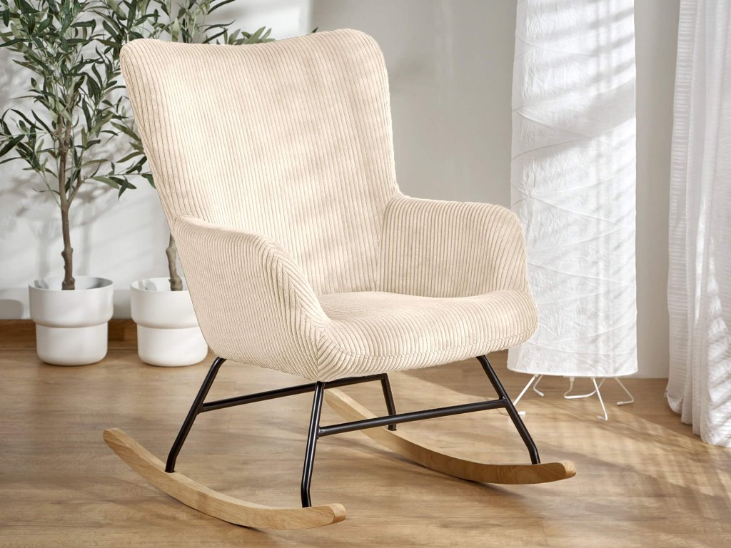 Hozzon létre az otthonában egy kényelmes helyet a pihenéshez. A BELMIRO hintaszék nem csak gyönyörű, de garantálja majd az igazi kikapcsolódást és relaxációt. Időtálló designnal rendelkezik és minőségi anyagokból készül, amely elegáns kiegészítő lesz a nappaliba, a hálószobába vagy a téli kertbe is. A Belmiro relaxációs fotel modern krémszínű manchester szövettel kárpitozott, amely igazán kellemes tapintású és biztosítja majd a kényelmét a benne való ülés folyamán. A semleges színének köszönhetően könnyen beillik bármilyen stílusú otthonba. A szék strapabíró szerkezettel rendelkezik. A fekete fém váz biztosítja a stabilitását. A kényelmes hintaszék tömör fából készült hintázó talpakkal rendelkezik. Ne habozzon és vásárolja meg ezt a modern is divatos bútordarabot.