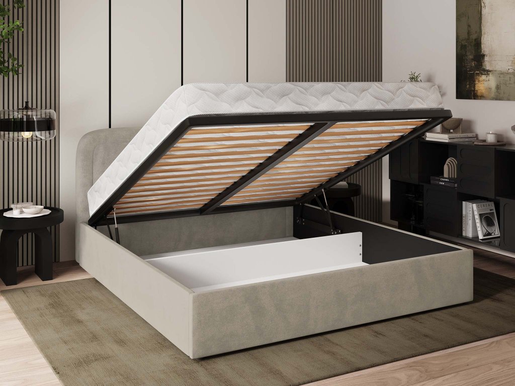 BENIRA K kárpitozott franciaágy ágyneműtartóval 140x200 - bézs