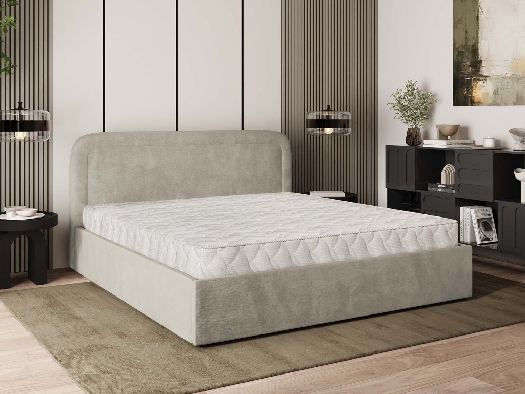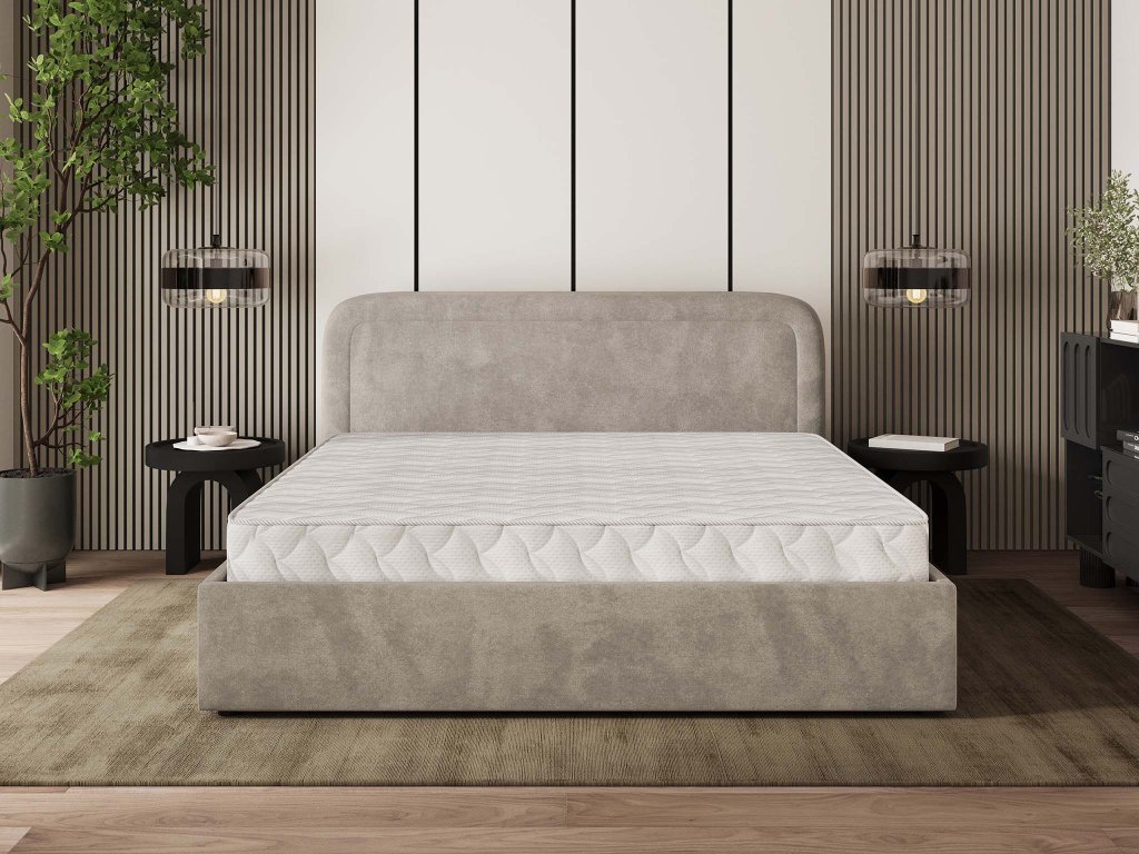 A BENIRA K bézs szövettel kárpitozott franciaágy 140x200 a modern elegancia és a kivételes kényelem megtestesítője. Az ágy magas háttámlával rendelkezik, amelyet elegáns steppelés díszít. Ez a puha kárpitozott ágytámla igazán jó szolgálatot tesz majd az esti tévénézés vagy könyvolvasás közben. A 140x200 cm méretének köszönhetően kisebb hálószobákba vagy kamaszok ifjúsági szobájába is megfelelő lehet. Az részét képezi a fém keretes ágyrács is rugalmas lamellákkal, amelyek meghosszabbítják a matrac élettartamát. A franciaágy ágyneműtartóval is rendelkezik, amely a fekhely alatt helyezkedik el. A robusztus szerkezete és a középső megerősítés kivételes stabilitást és tartósságot biztosít a mindennapos használathoz. A Benira K ágy nem csupán egy egyszerű bútordarab, de a nyugalom szigete is, ahol a hosszú nap után valódi pihenés vár majd mindenkire.