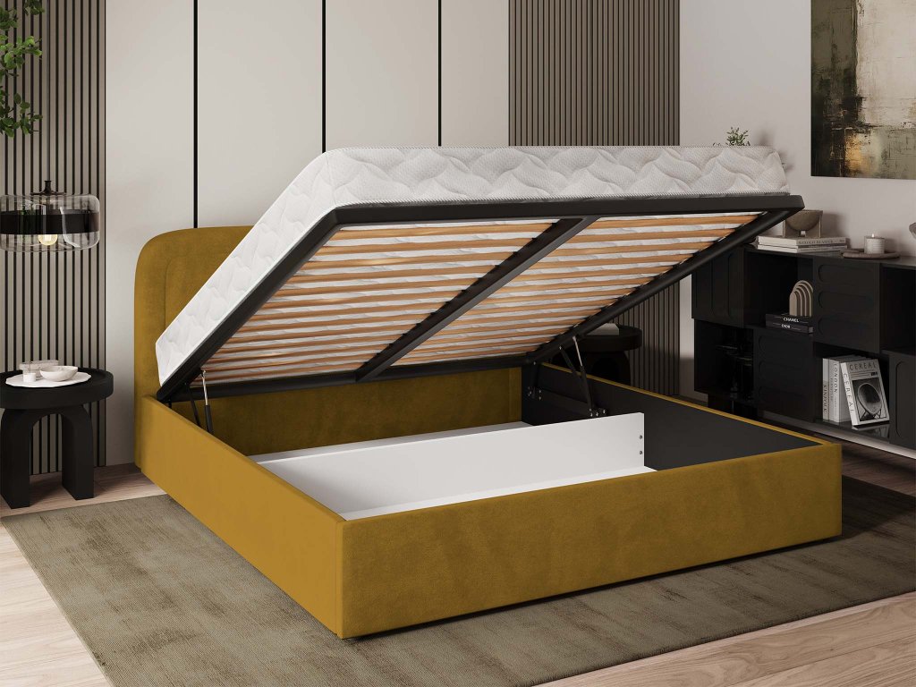BENIRA K kárpitozott franciaágy ágyneműtartóval 160x200 - mustársárga
