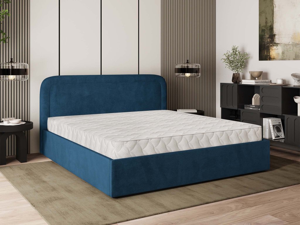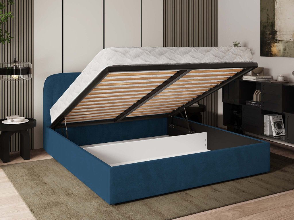 BENIRA K kárpitozott franciaágy ágyneműtartóval 180x200 - királykék